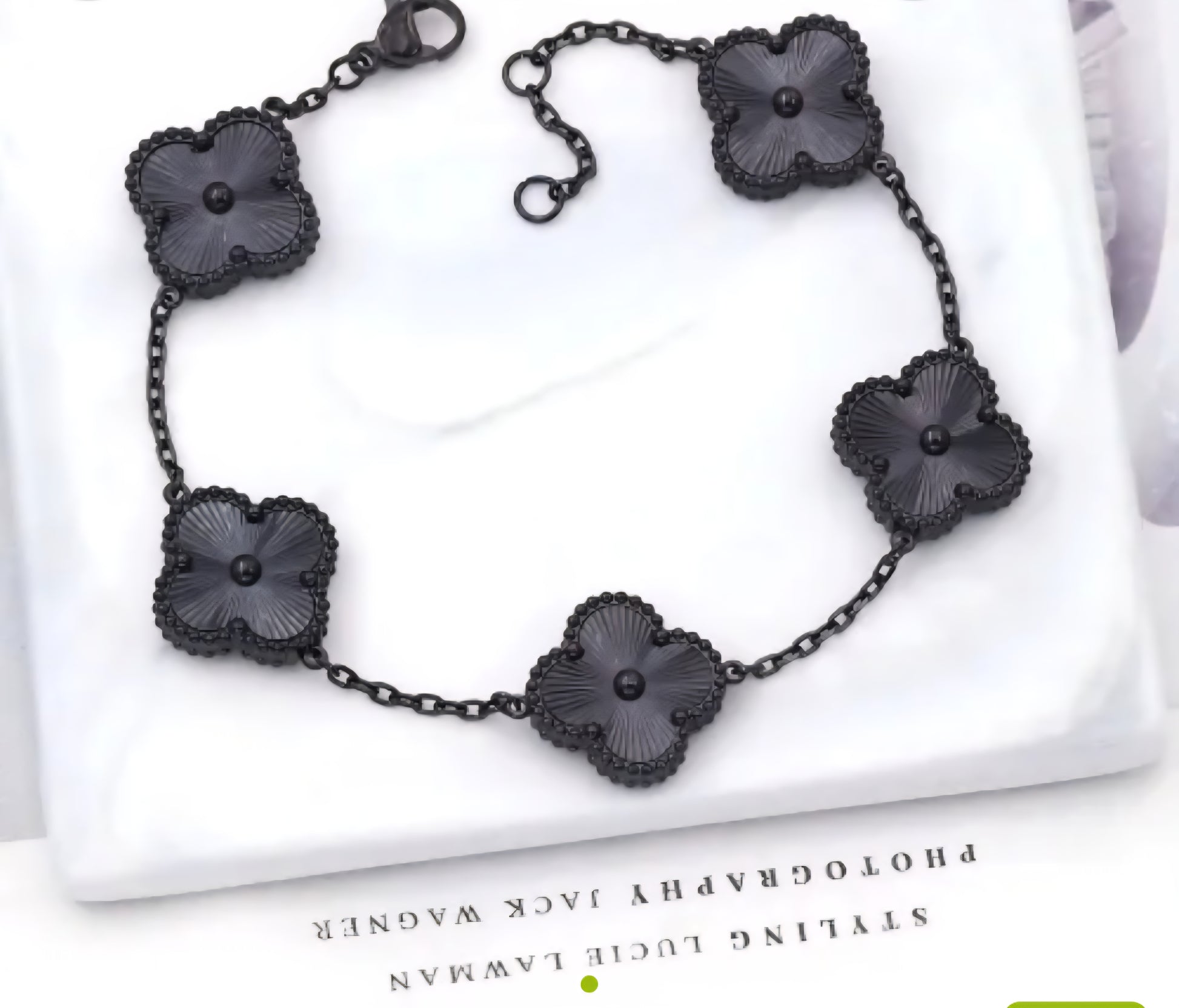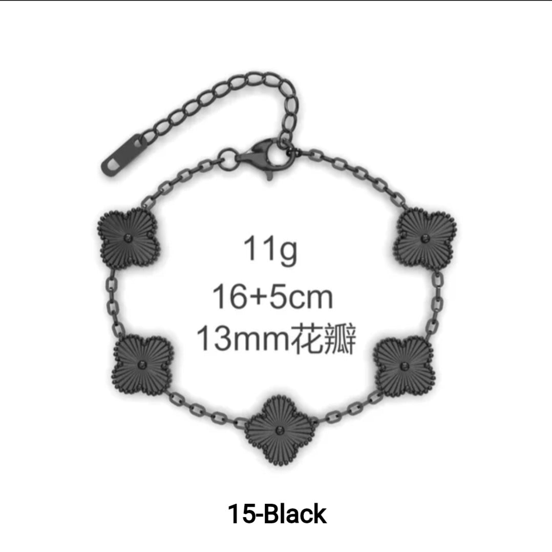 Gun smoke Stainless Steel 4 leaf clover inspired Bracelet