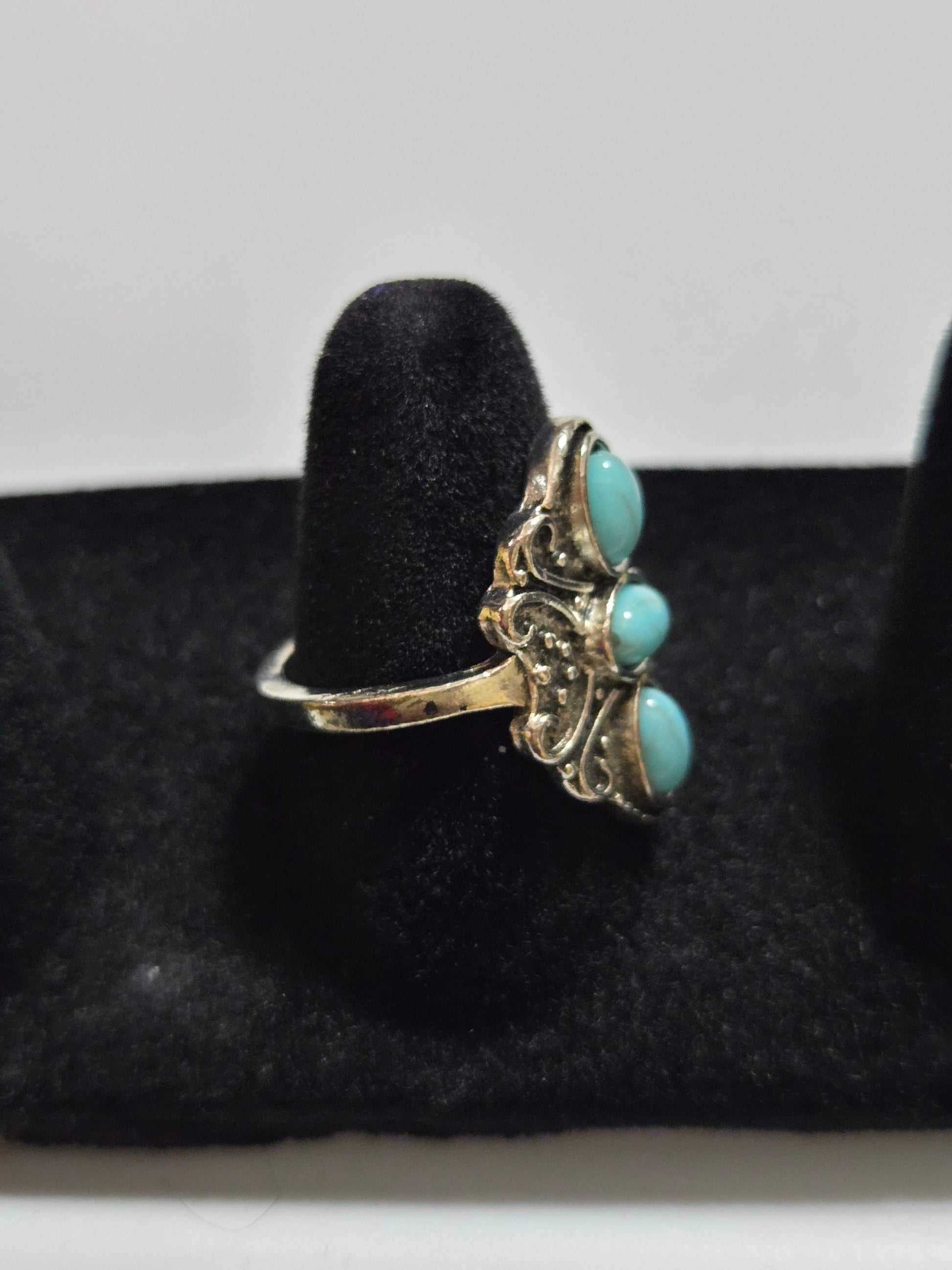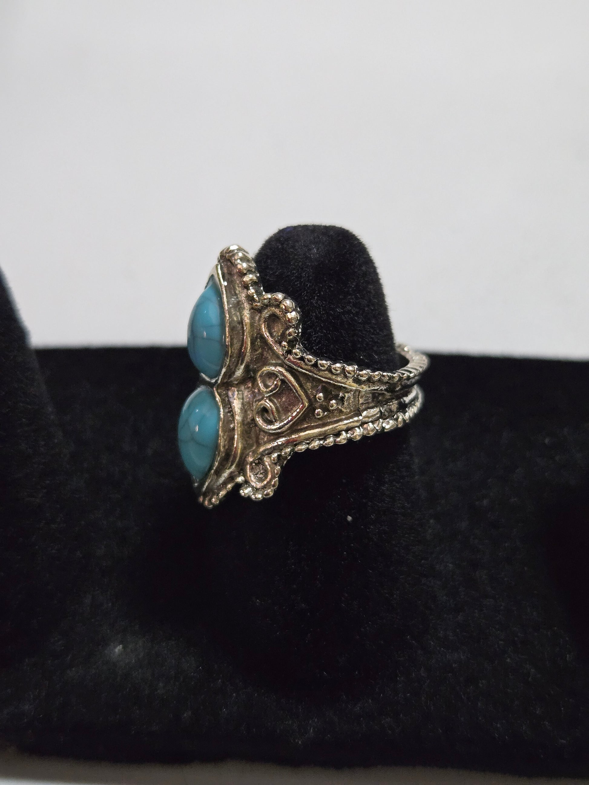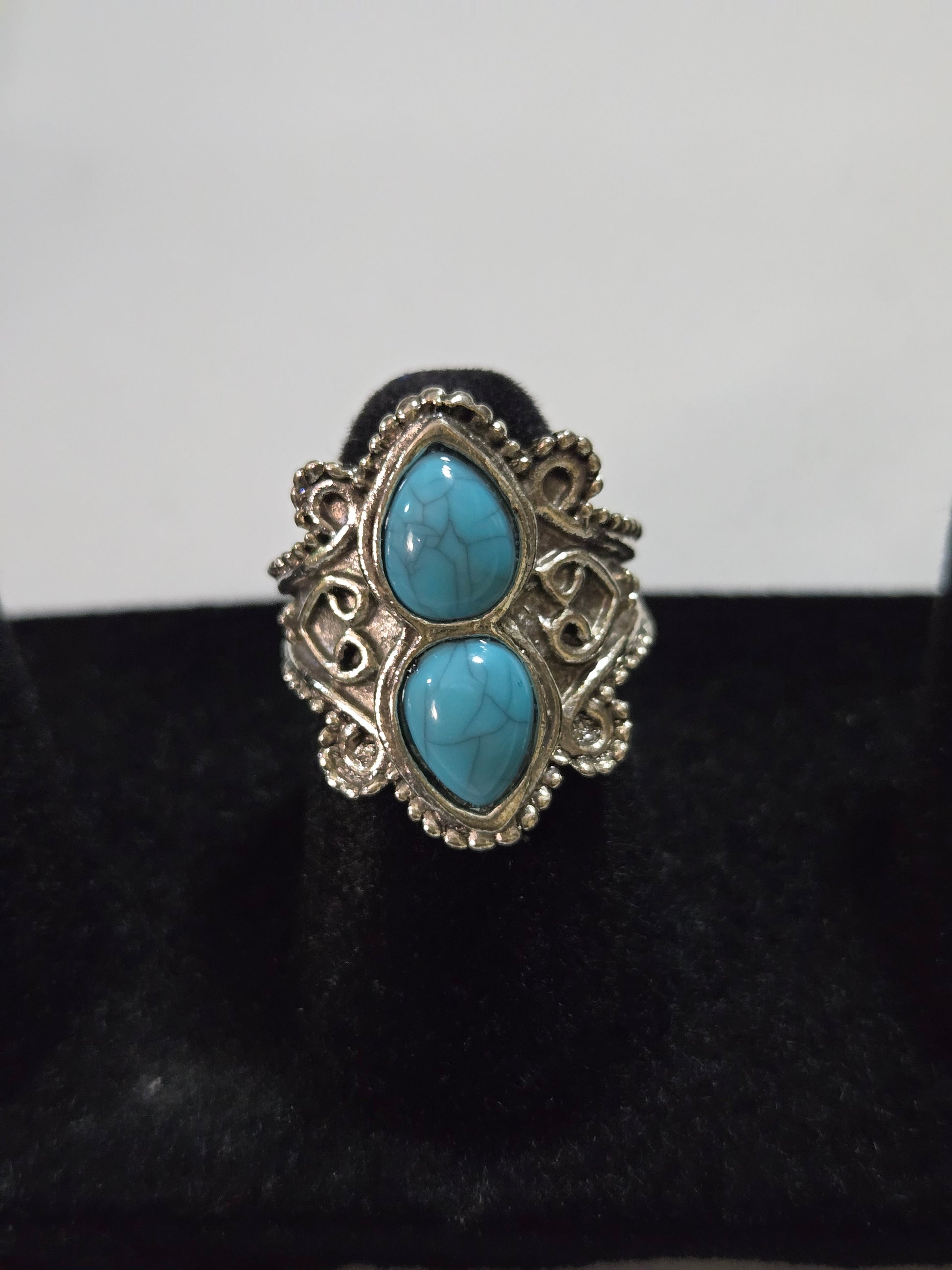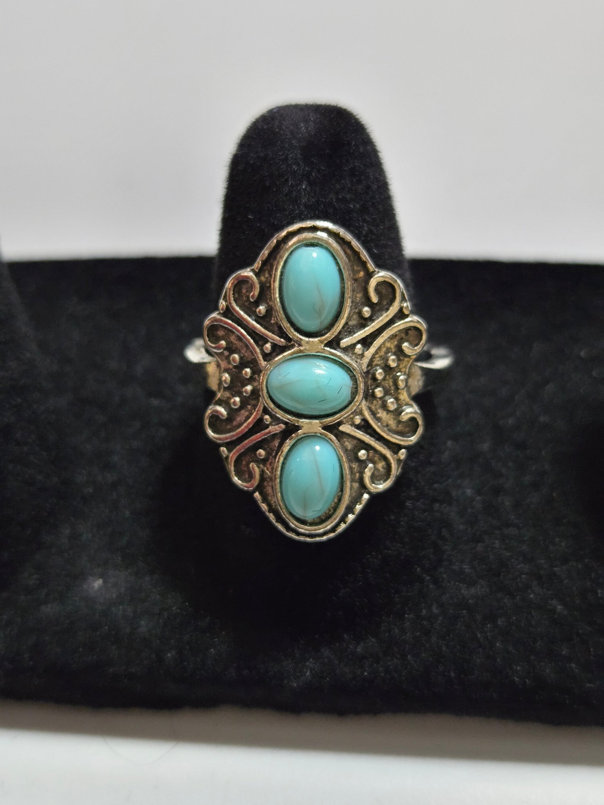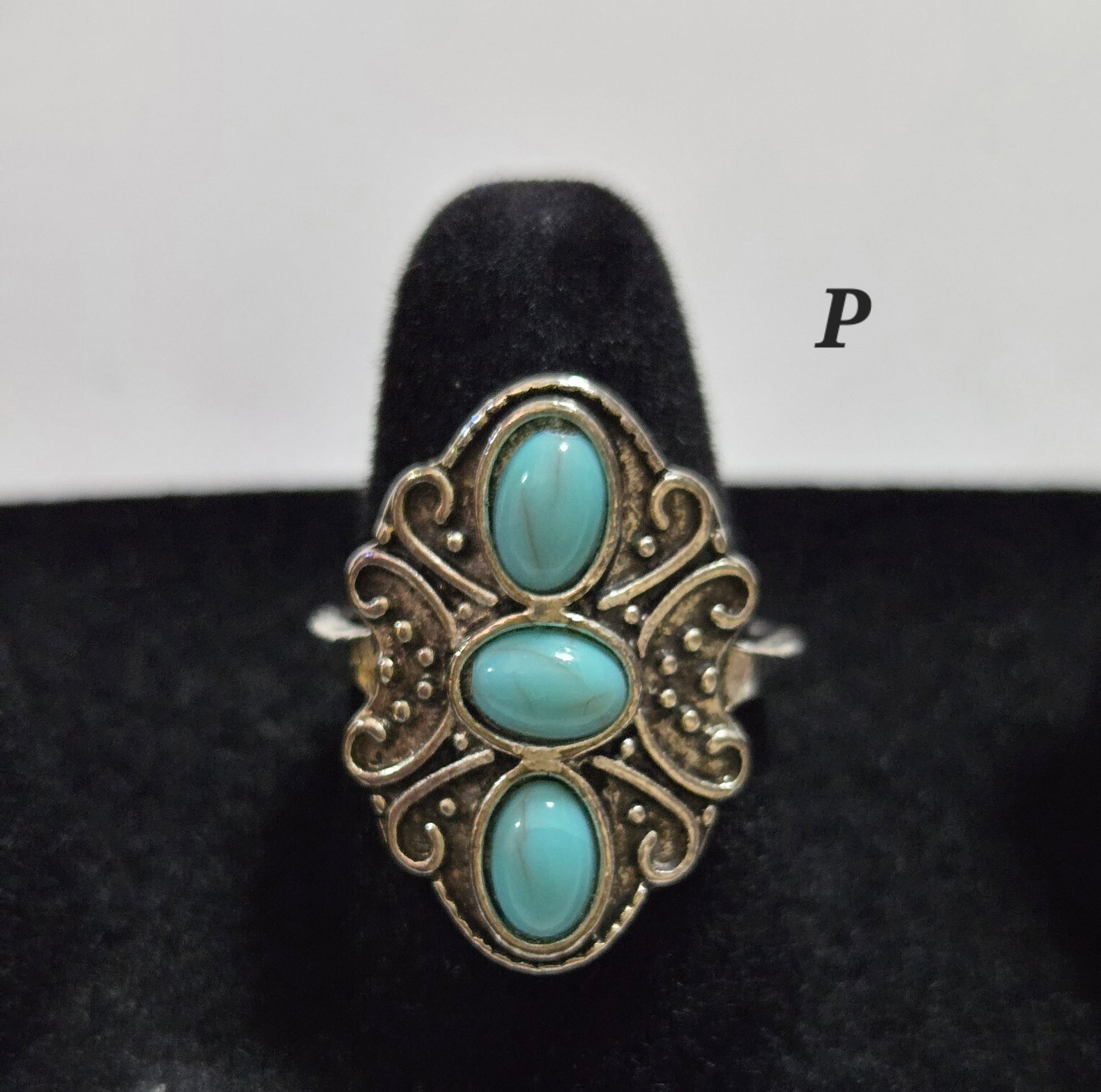 Boho Vintage inspire Turquoise Rings Material consists Alloy Silver Plated