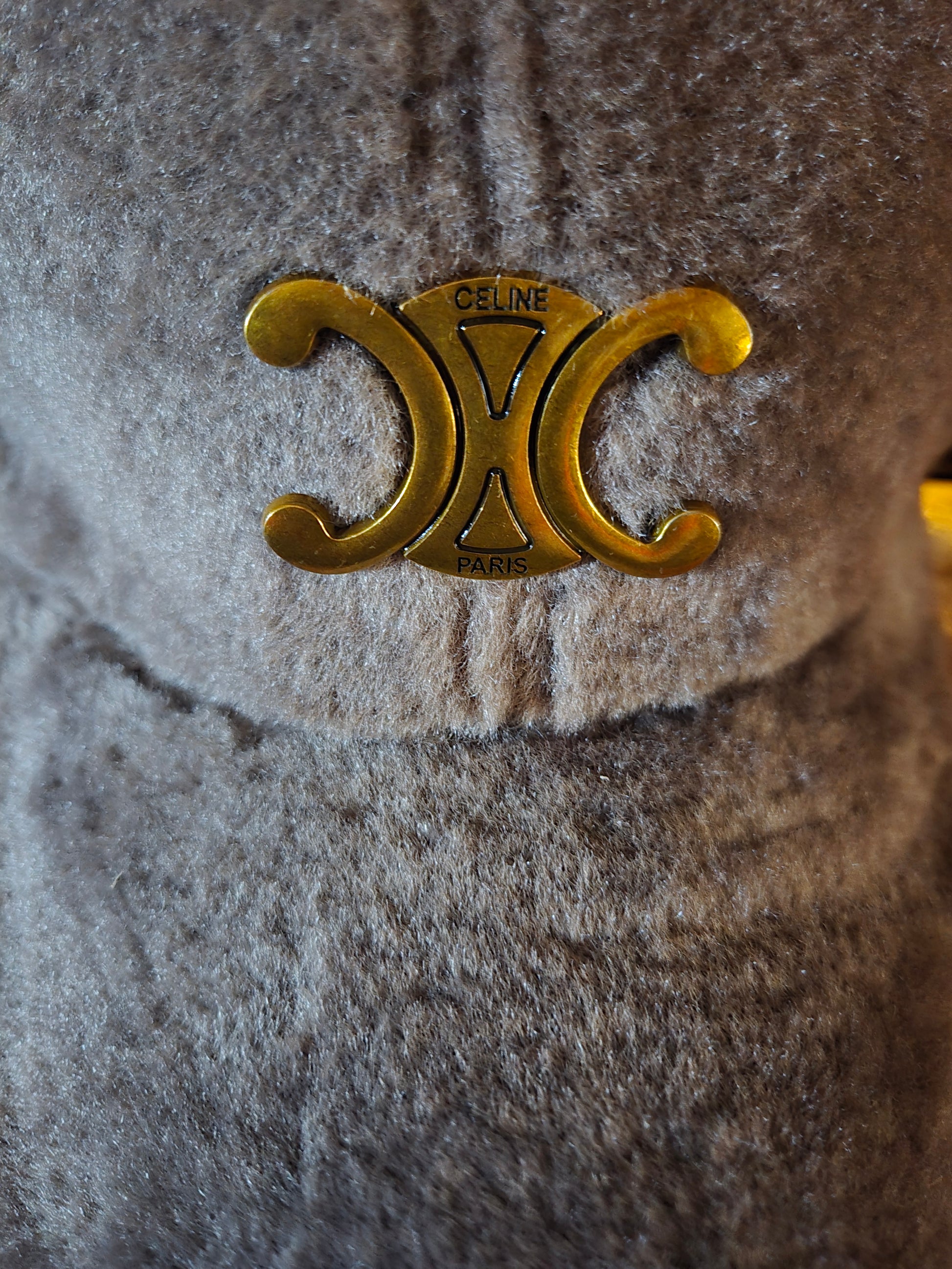 Celine inspired brown and black Luxury Designer Baseball Cap with antique gold hardware