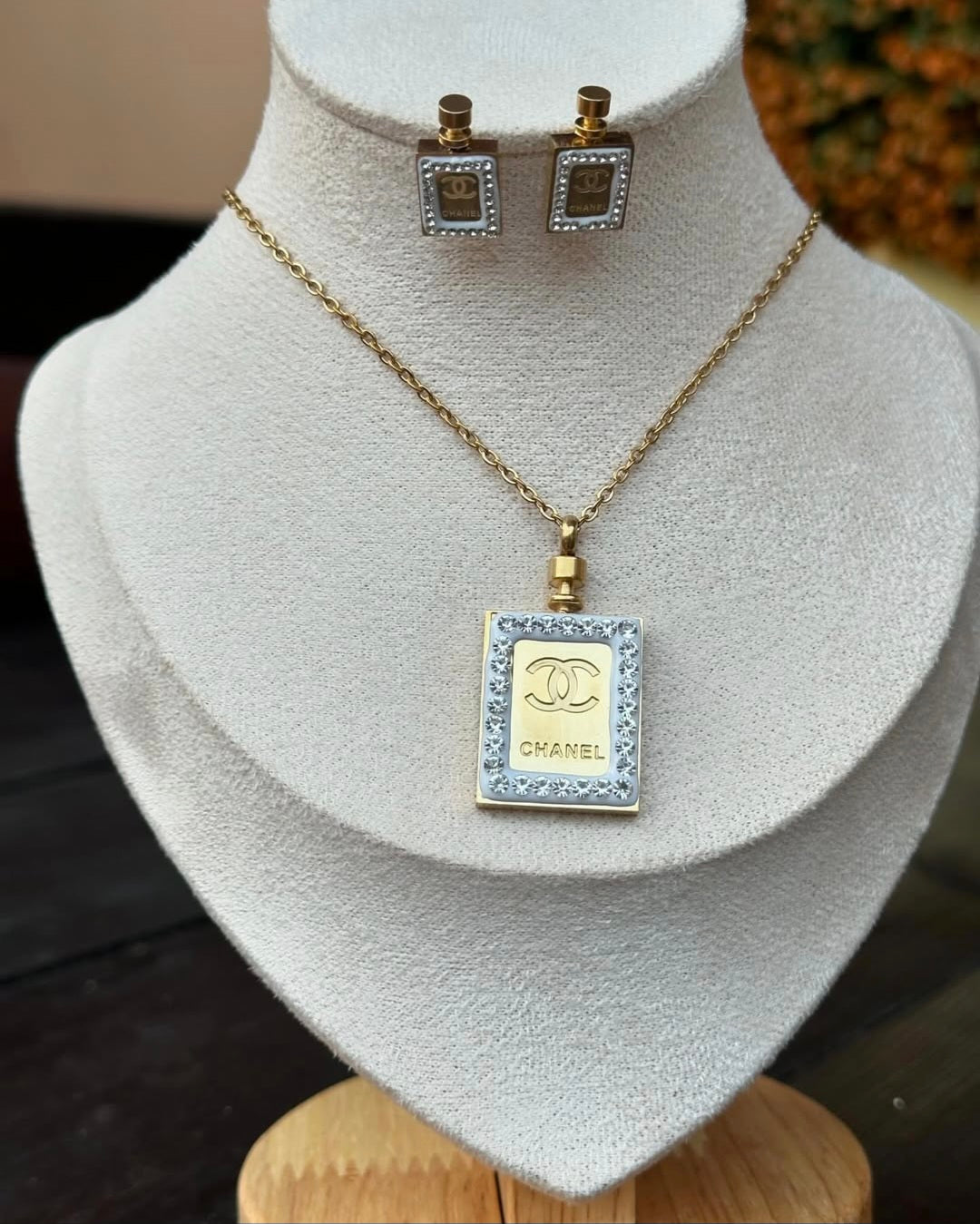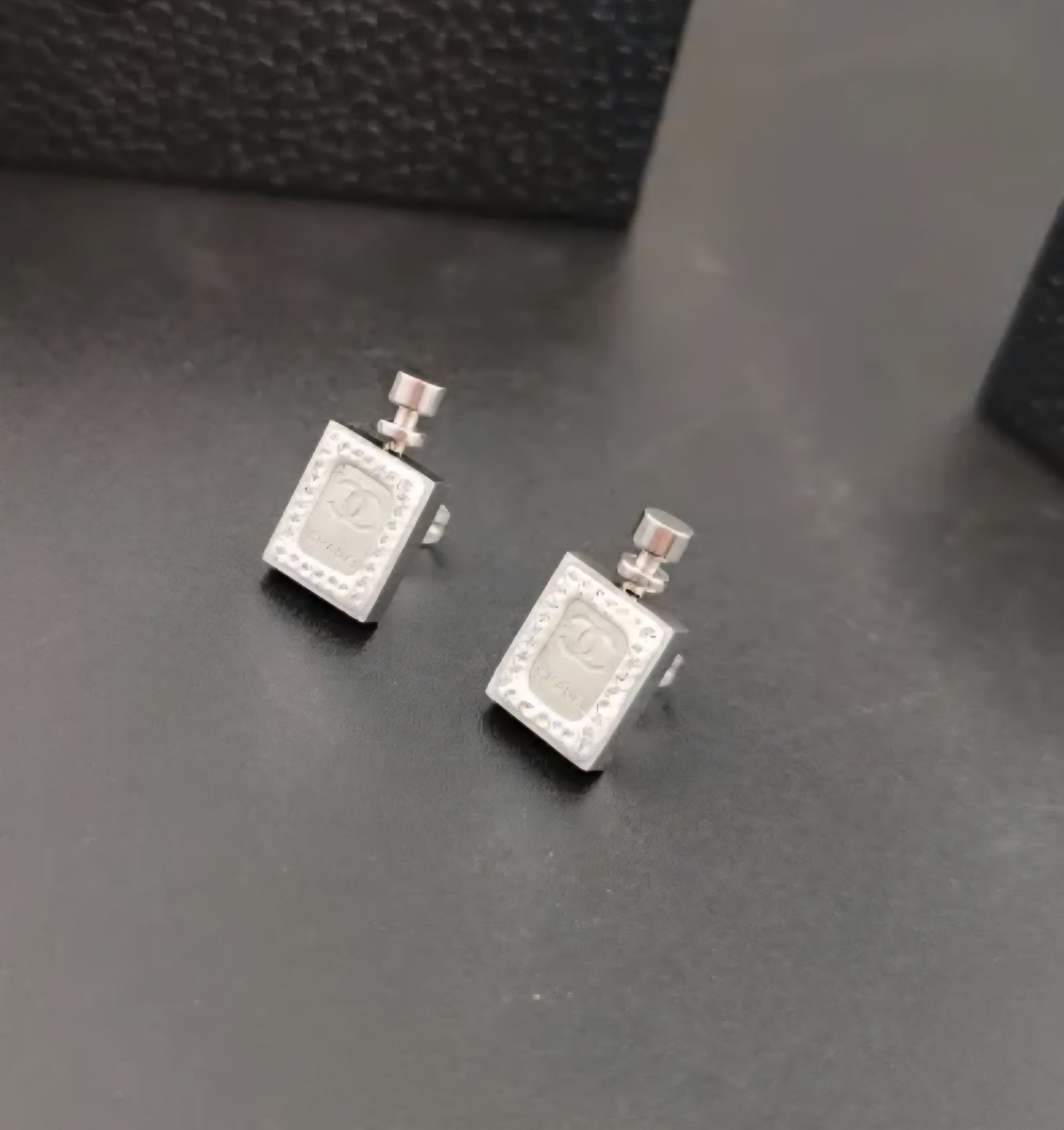 Chanel inspired Stainless steel Perfume Bottle Earrings.