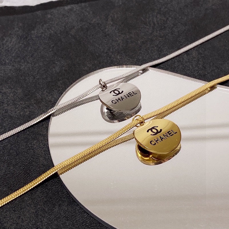 Stainless Steel 18k Gold and Silver Plated Designer Inspired Chanel Herringbone Pendant Necklace