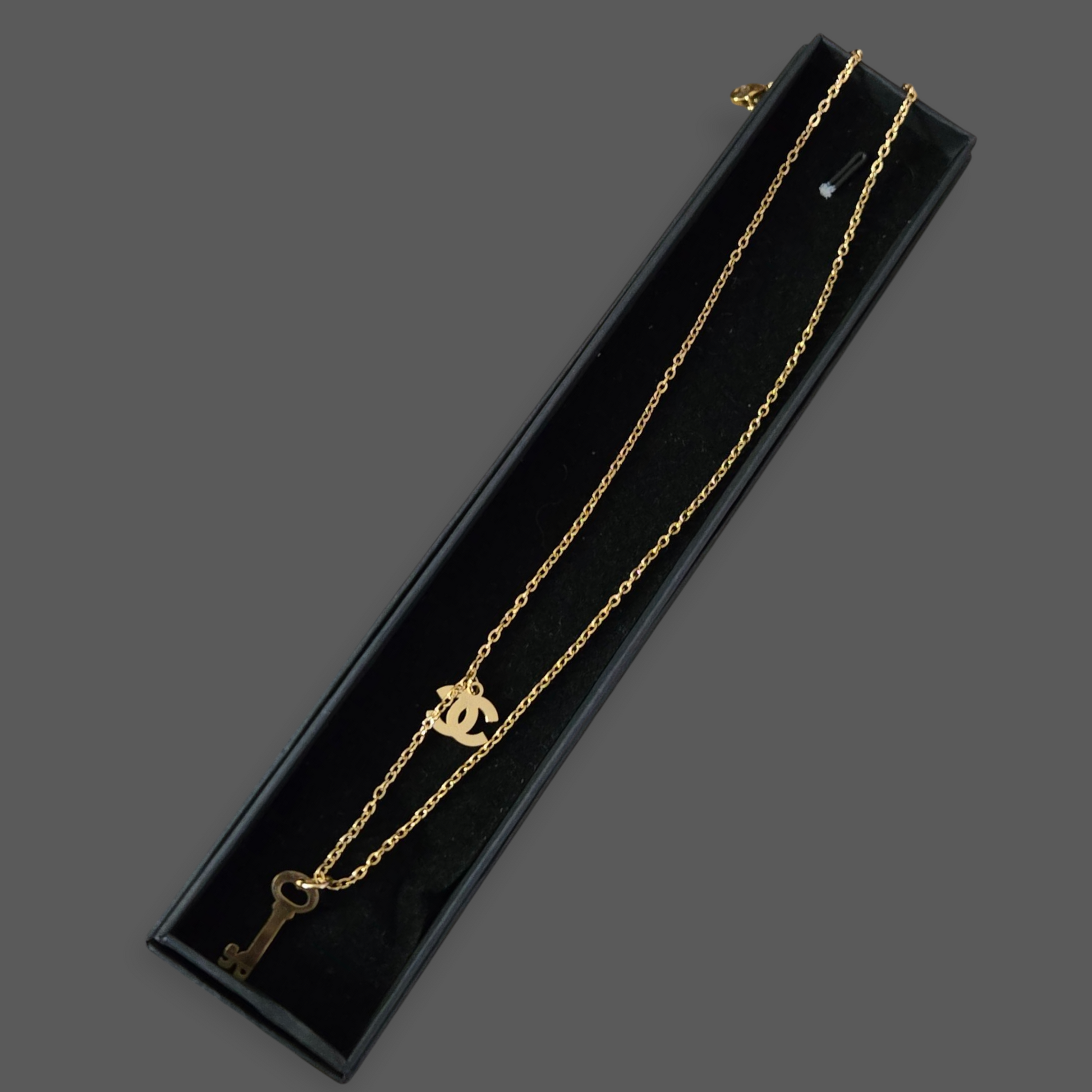 Luxury inspired 18K gold and Silver Plated stainless steel CC dainty adjustable necklace
