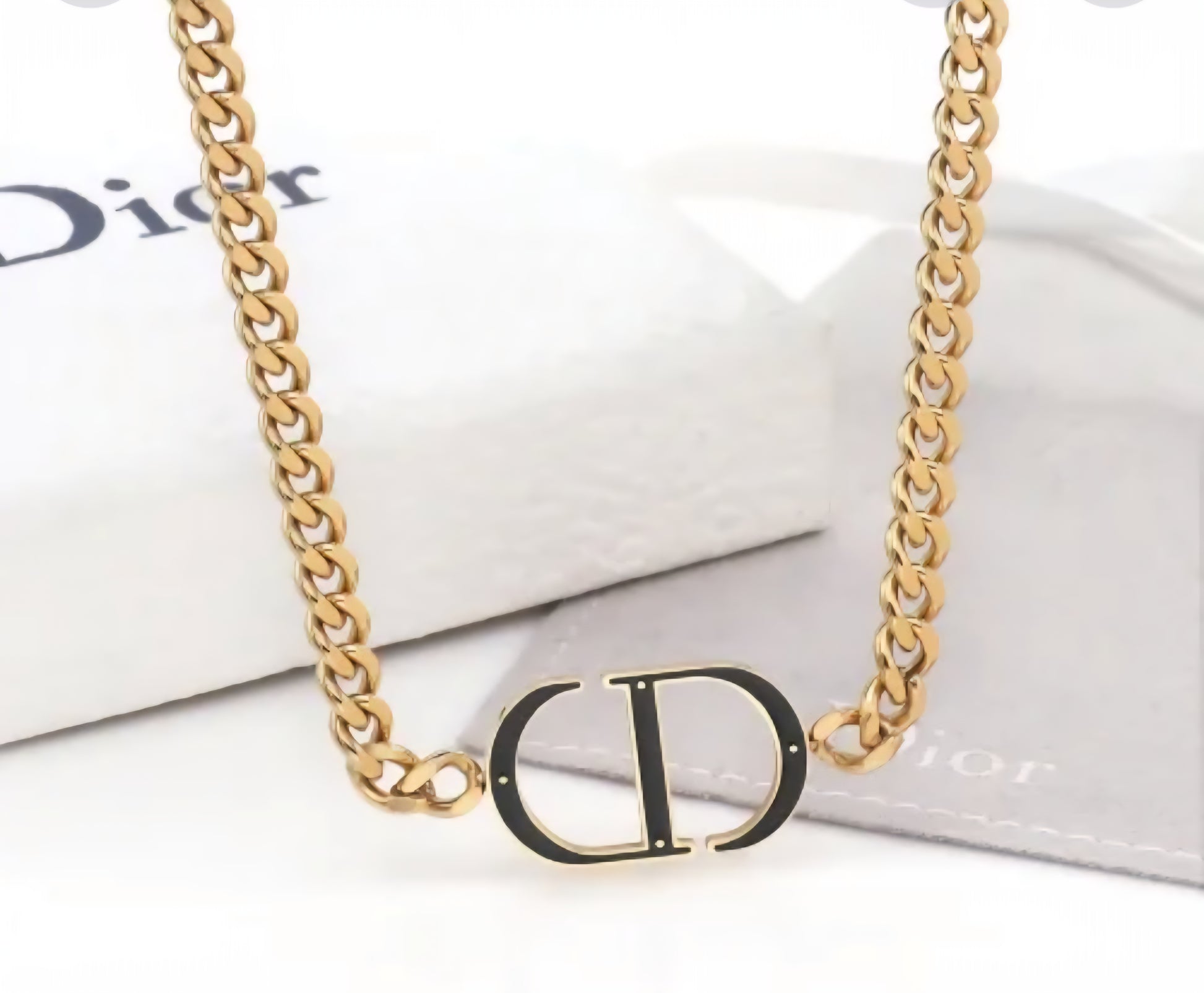 Christian Dior inspired stainless steel gold plated cuban necklace