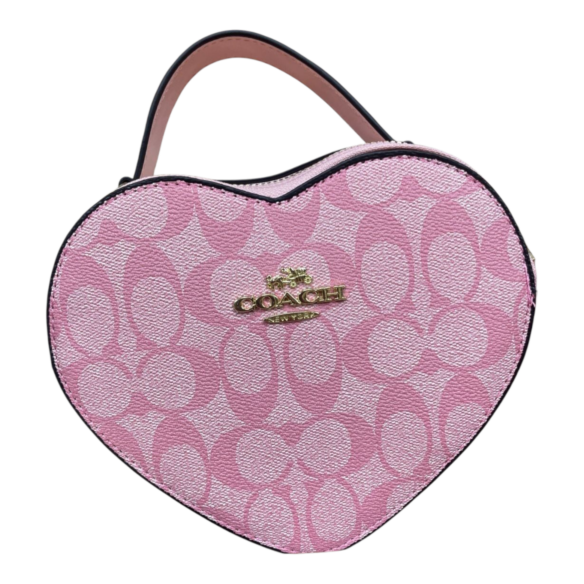 Coach Luxury inspired faux leather heart shape mini handbag with leather strap and gold hardware.