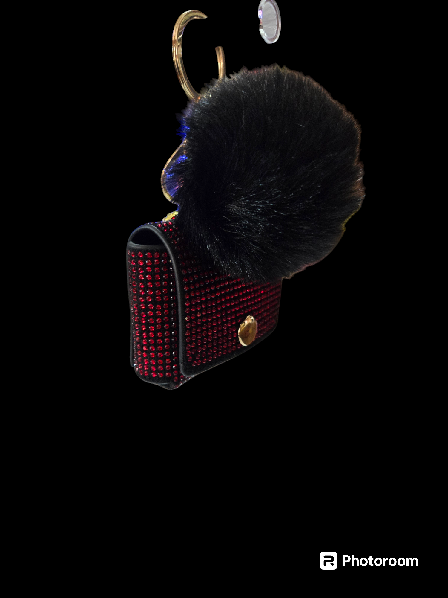 Custom Made Fashion Diamond handbag coin purse key chain with Pompom and rhinestone, and heart charm
