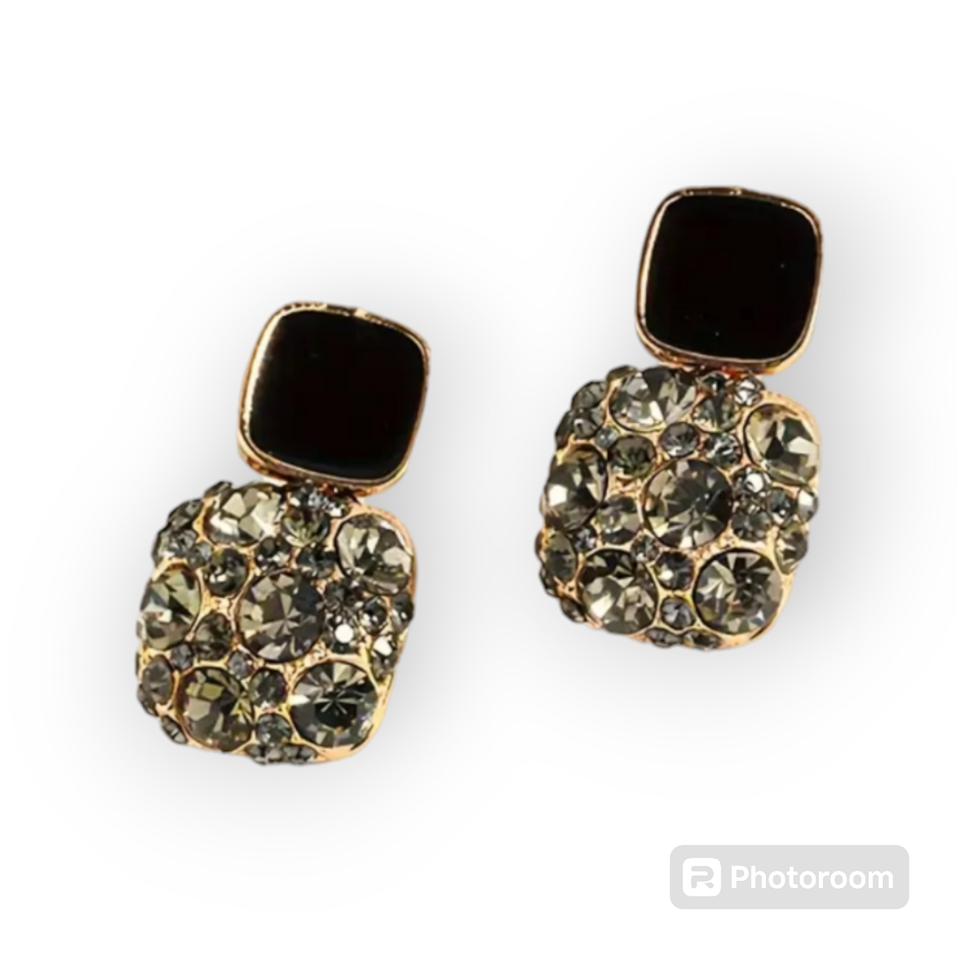 Eleqant Black and Gold Rhinestones Square Drop 925 Sterling Silver Earrings