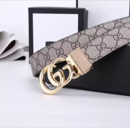 This is a Gucci Inspired belt with a gold-toned Double G buckle..