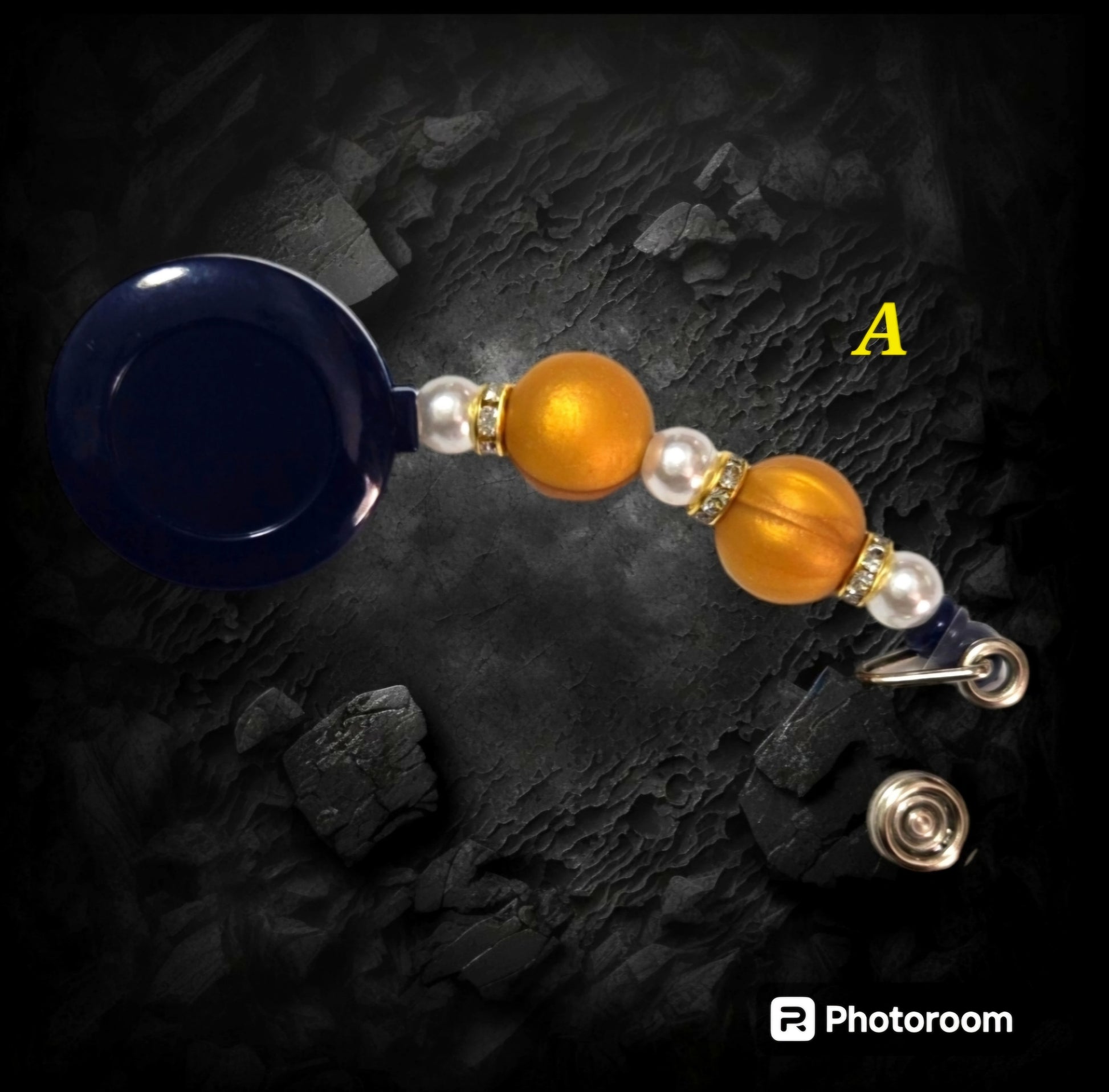 A: Navy Blue reel with gold silicone beads and pearl beads