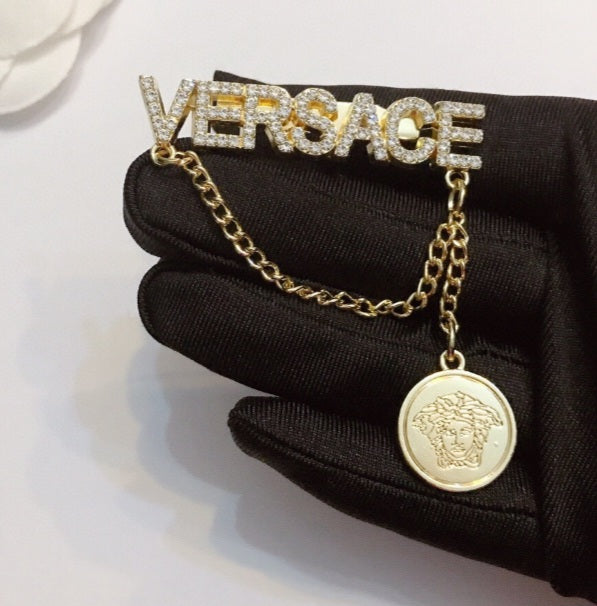 Ashley Marie Boutique and Spa LLC Designer Inspired V rhinestone gold and silver plated brooch