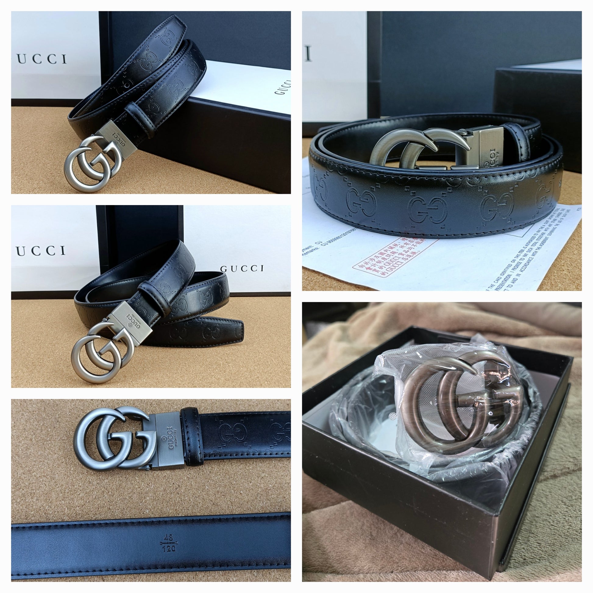 Luxury Designer inspired Gucci Genuine leather blsck belt hardware