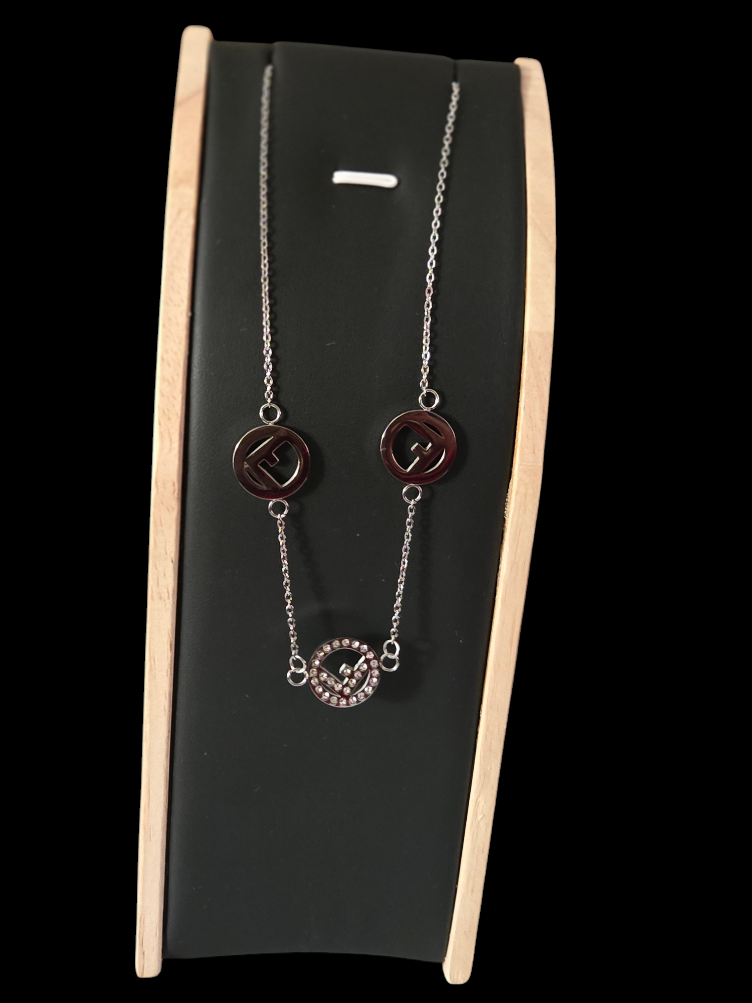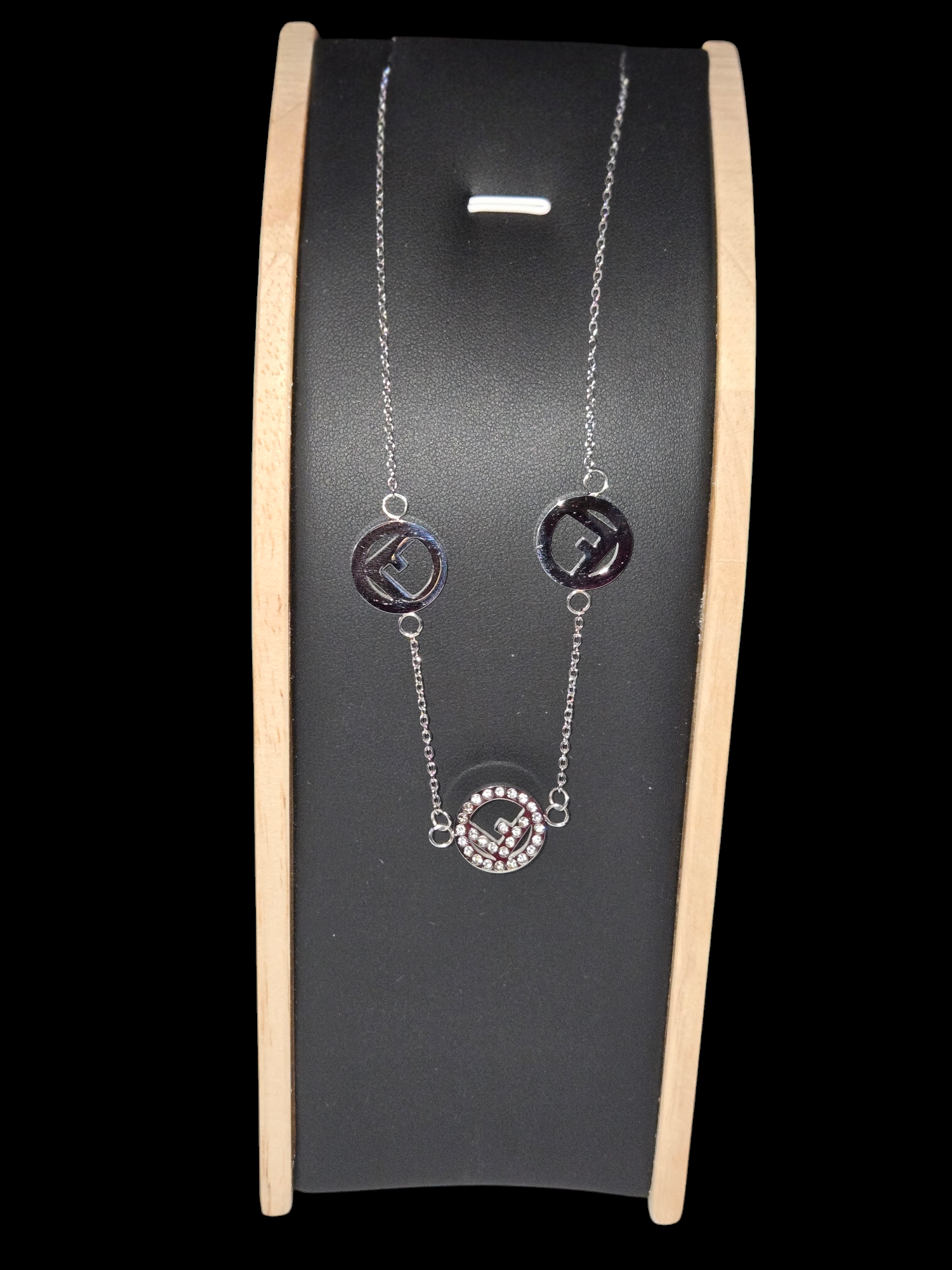 luxury inspired Fendi stainless steel with rhinestone necklace