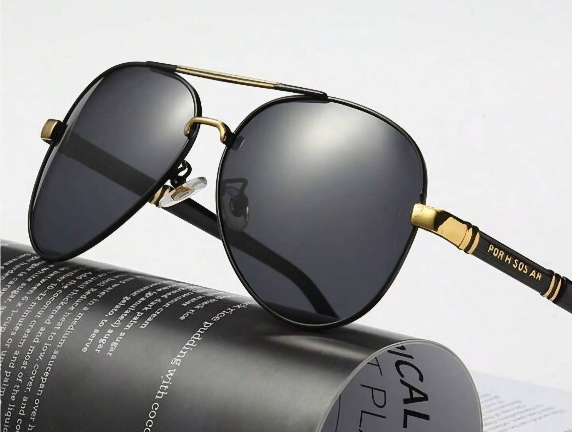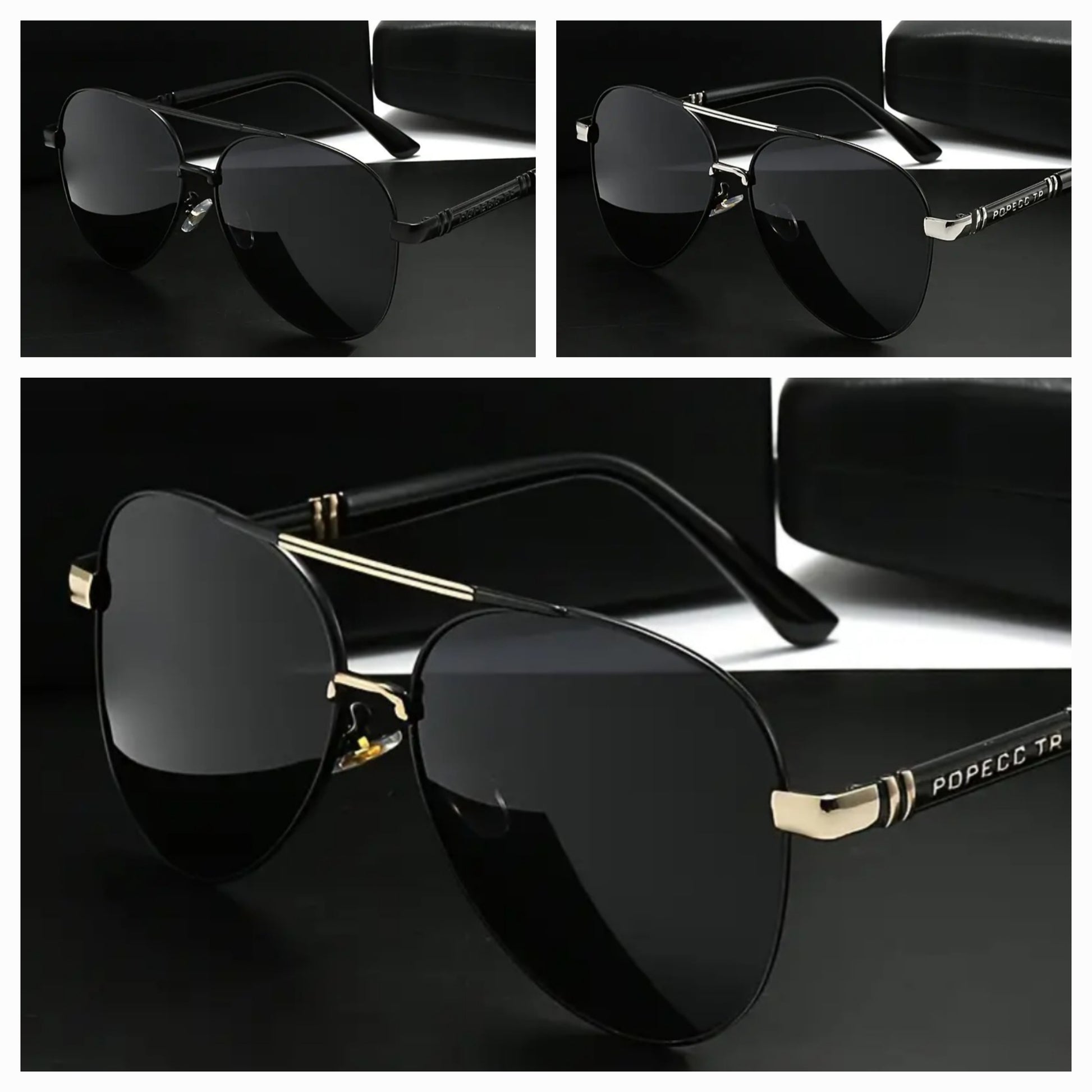 Luxury men polarized black anti-reflective driving sunglasses. UV400