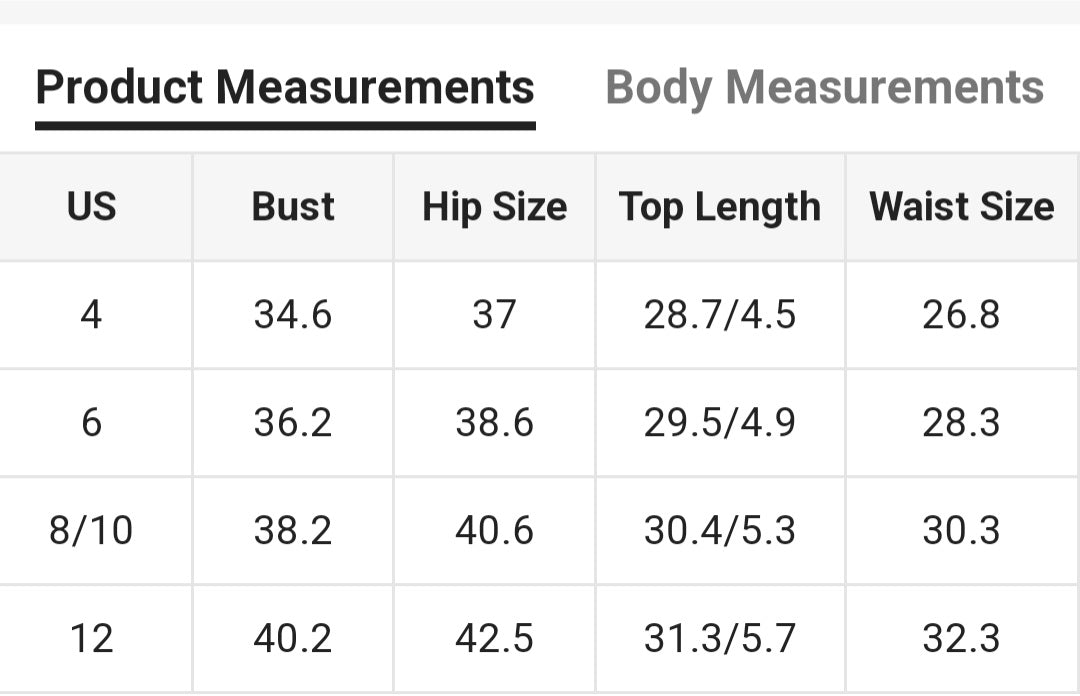 Size: Small (4) Medium (6) Large(8/10) X-Large (12)