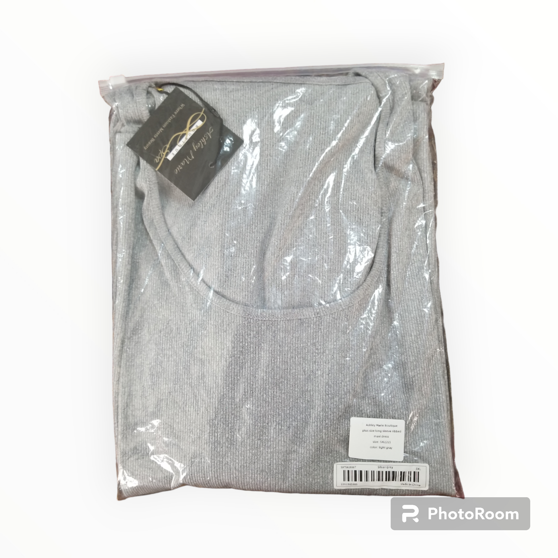 Plus size solid casual long sleeve square- neck sliver silver gray bodycon maxi dress.