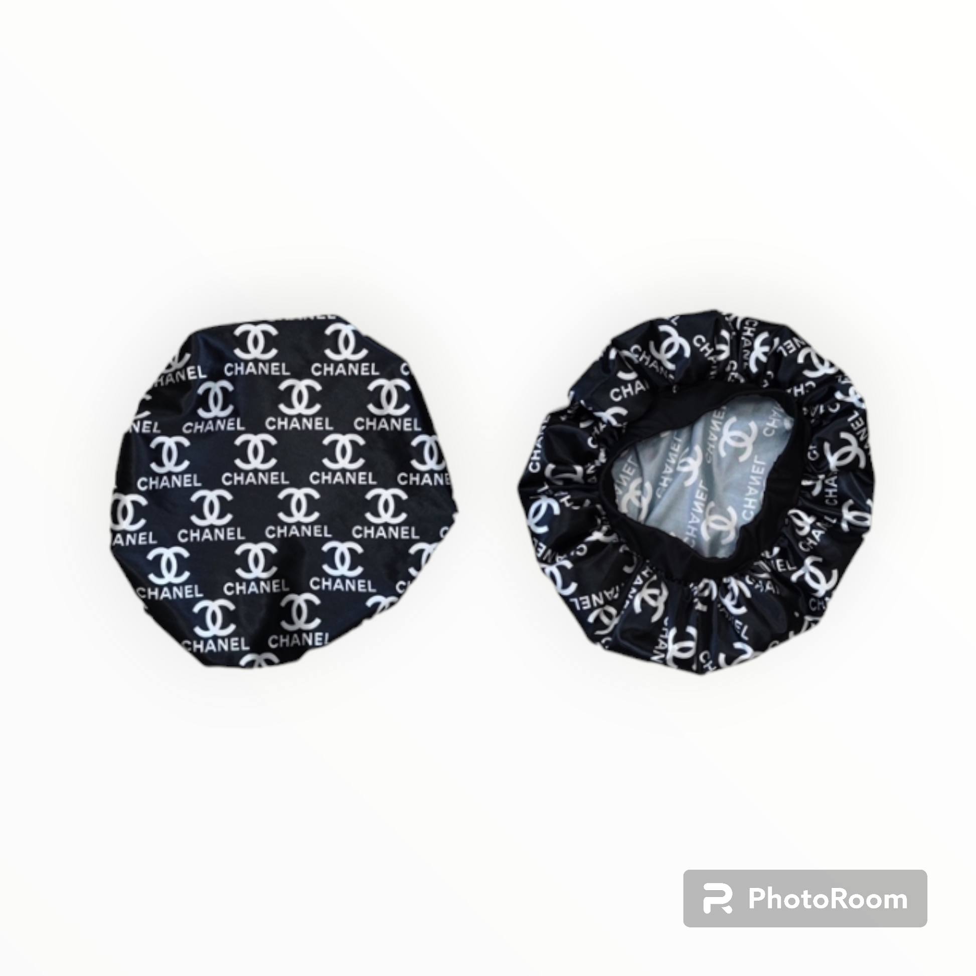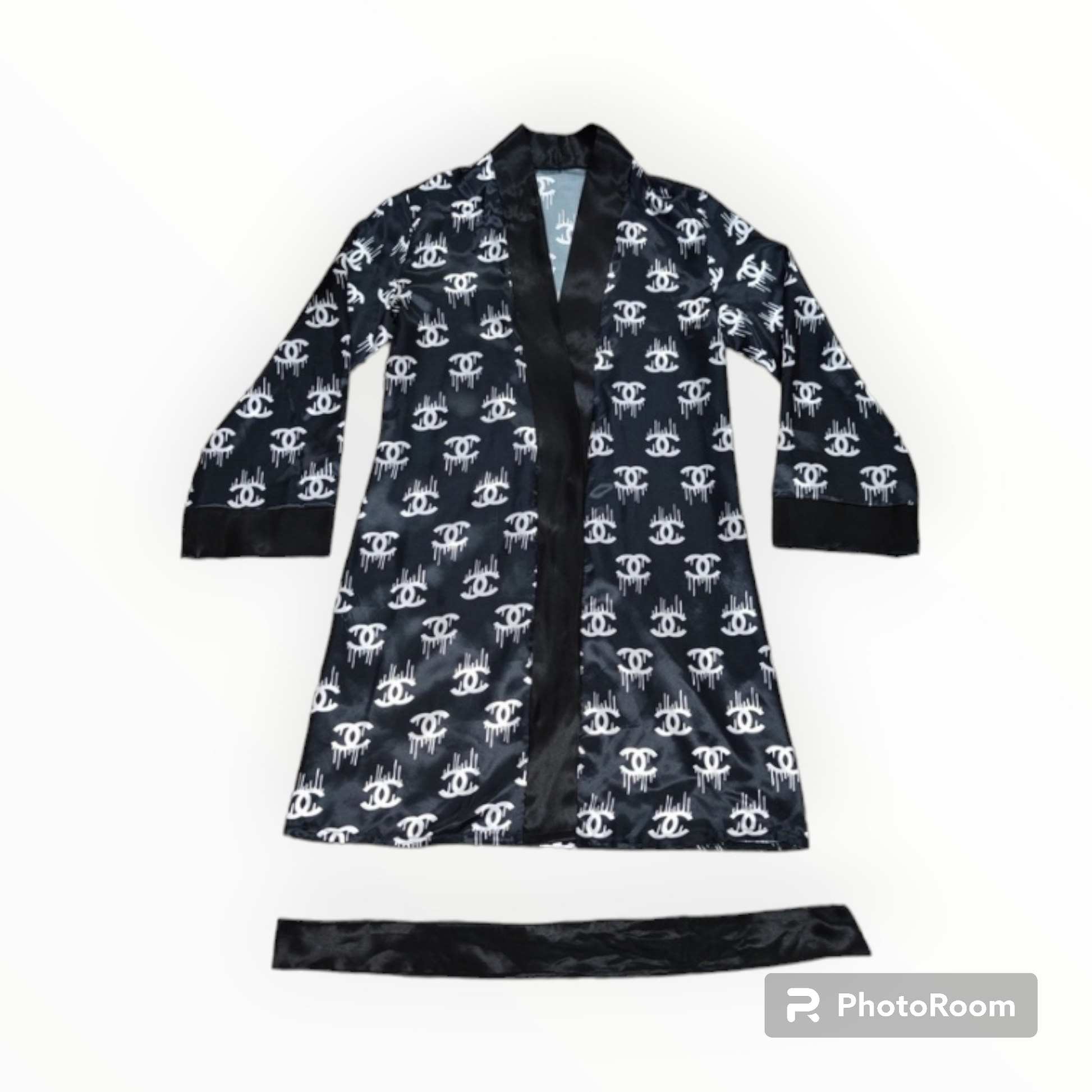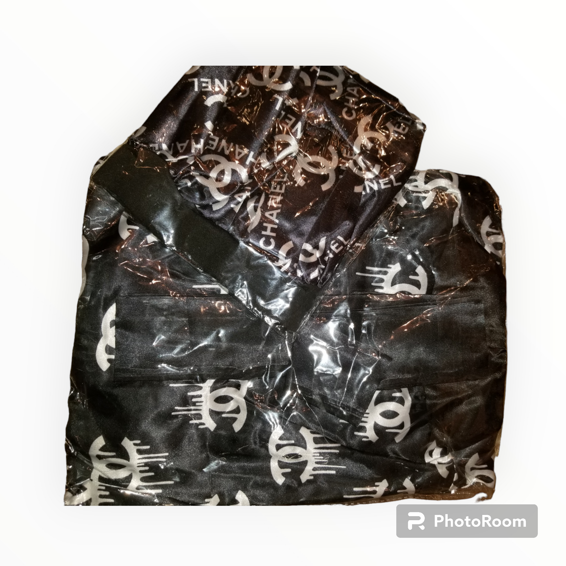 monogram inspired robe and Bonnet set color black and white size small, medium, and large