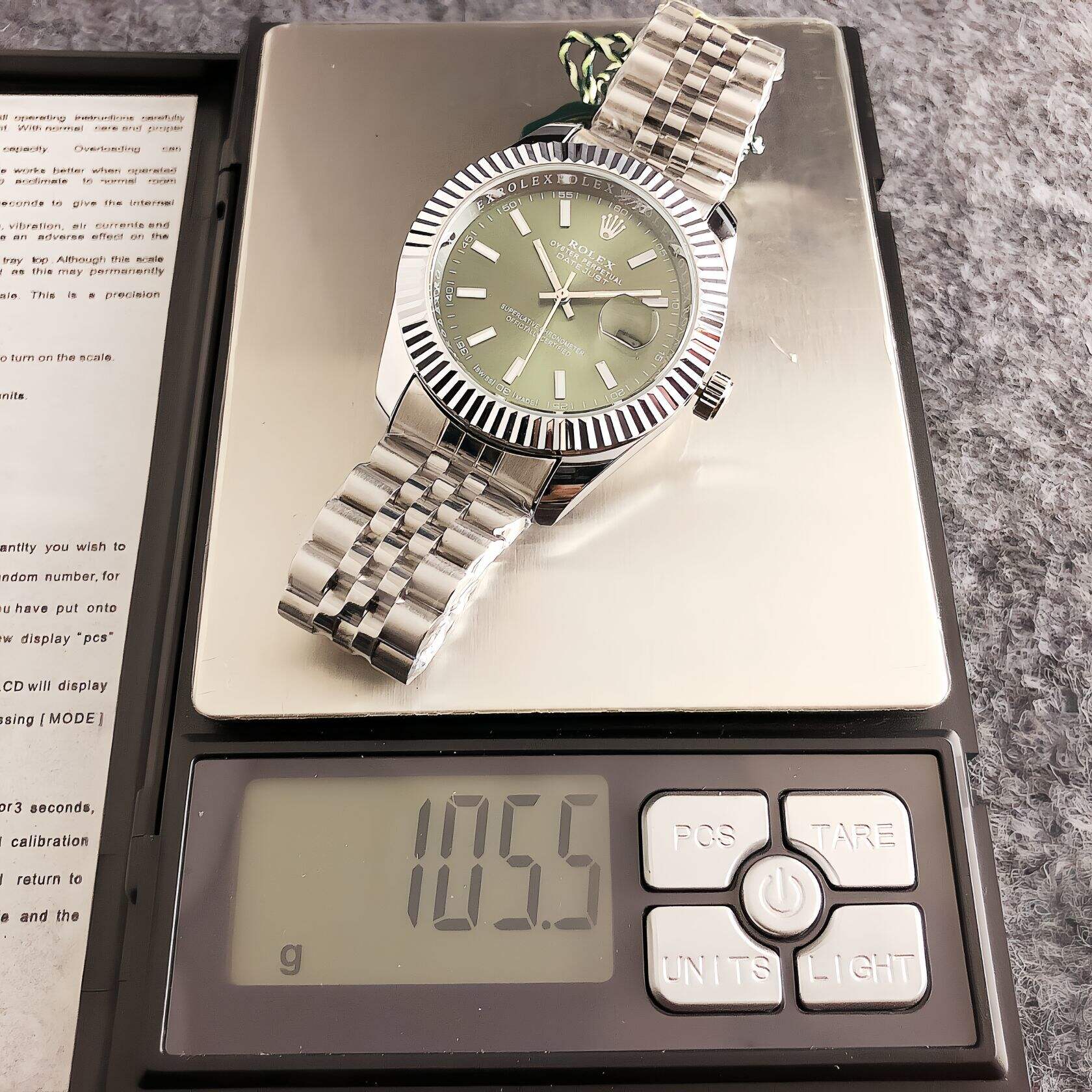 Stainless Steel Water Proof Round Face Silver Band Green Face Analog Watch