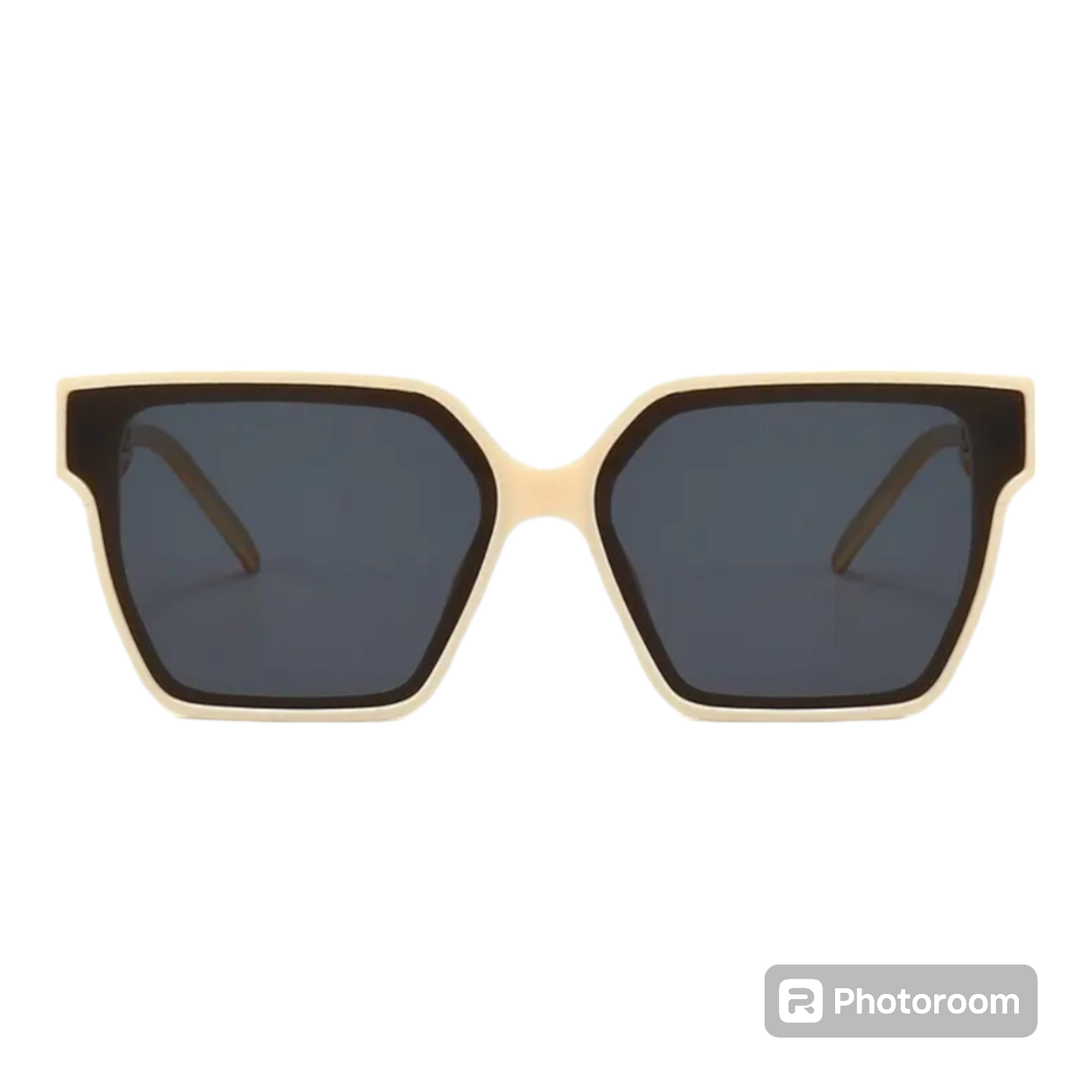 Unisex beige lightweight vintage style square plastic eyewear with acrylic lenses .