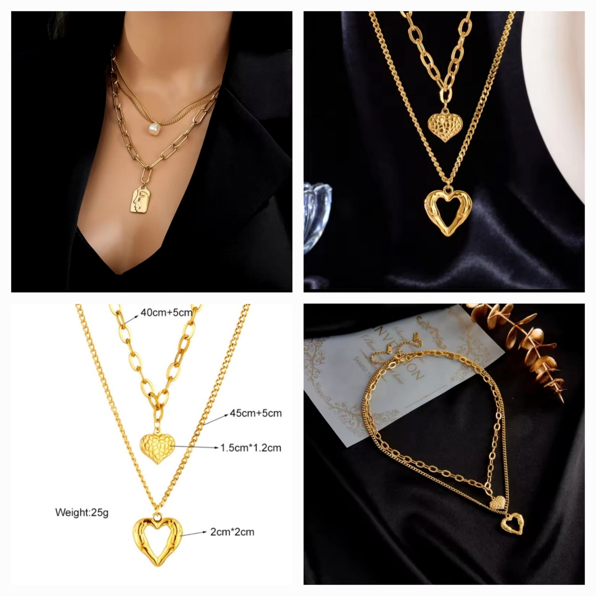 Luxury inspired 316L stainless steel stackable adjustable necklace set