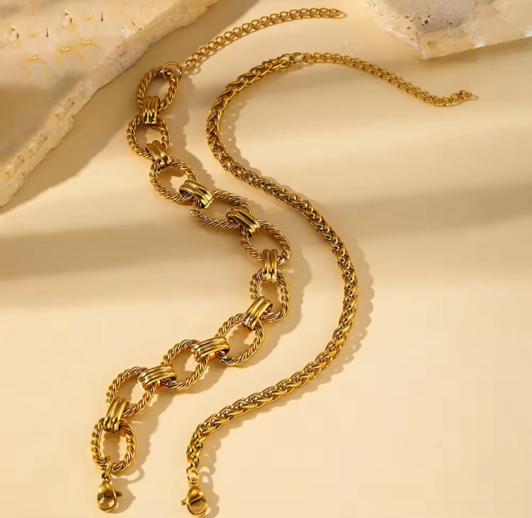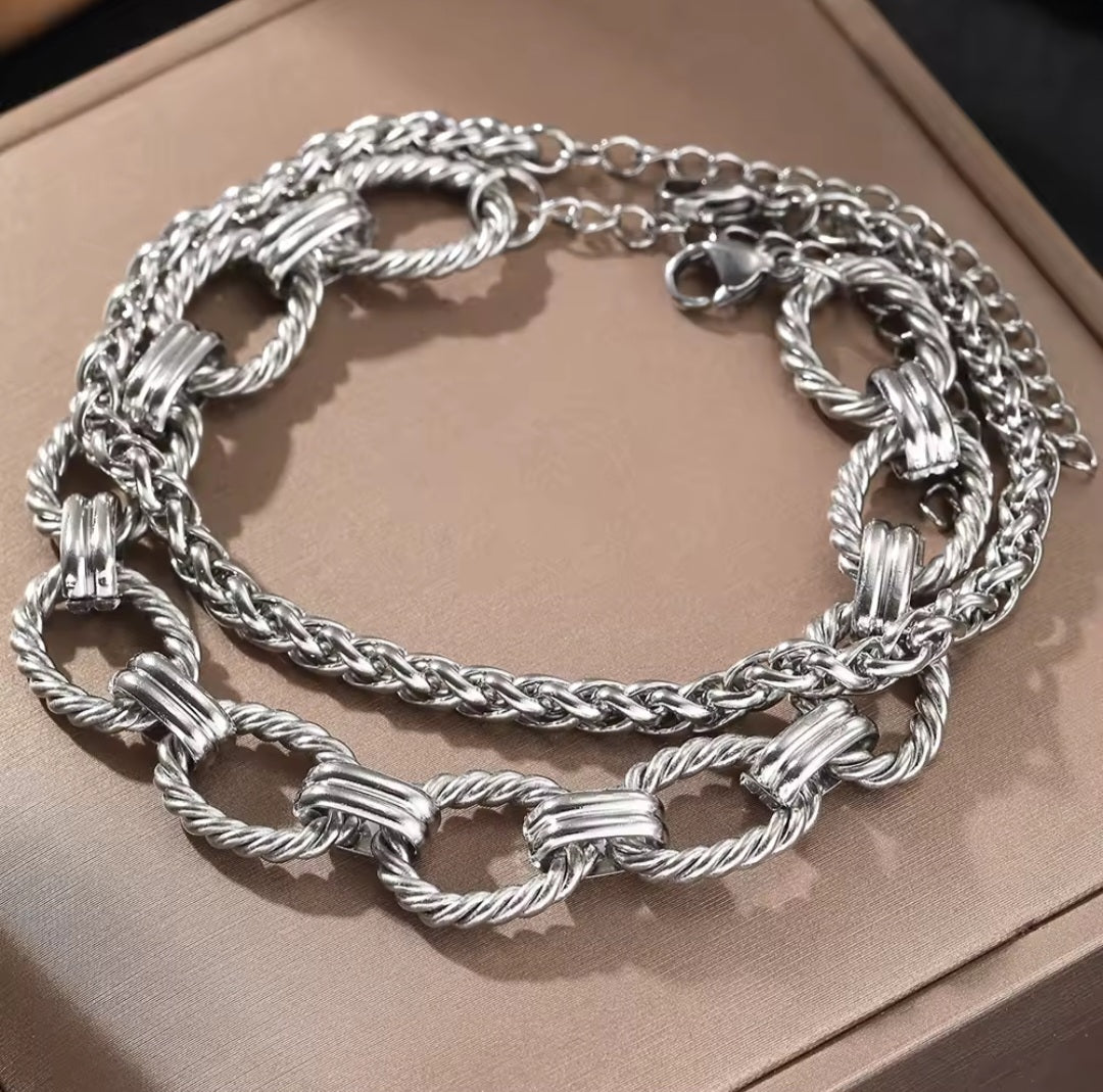 David Yurman inspired stainless steel 2pc chain link bracelet set