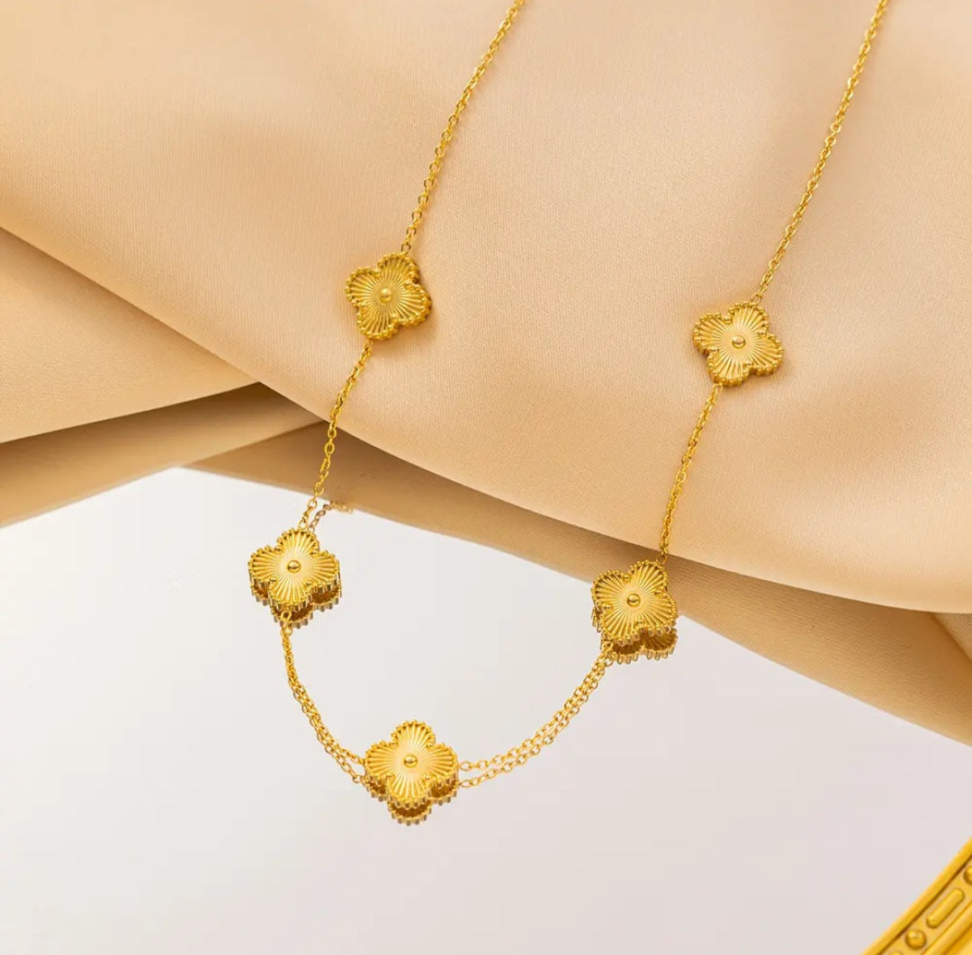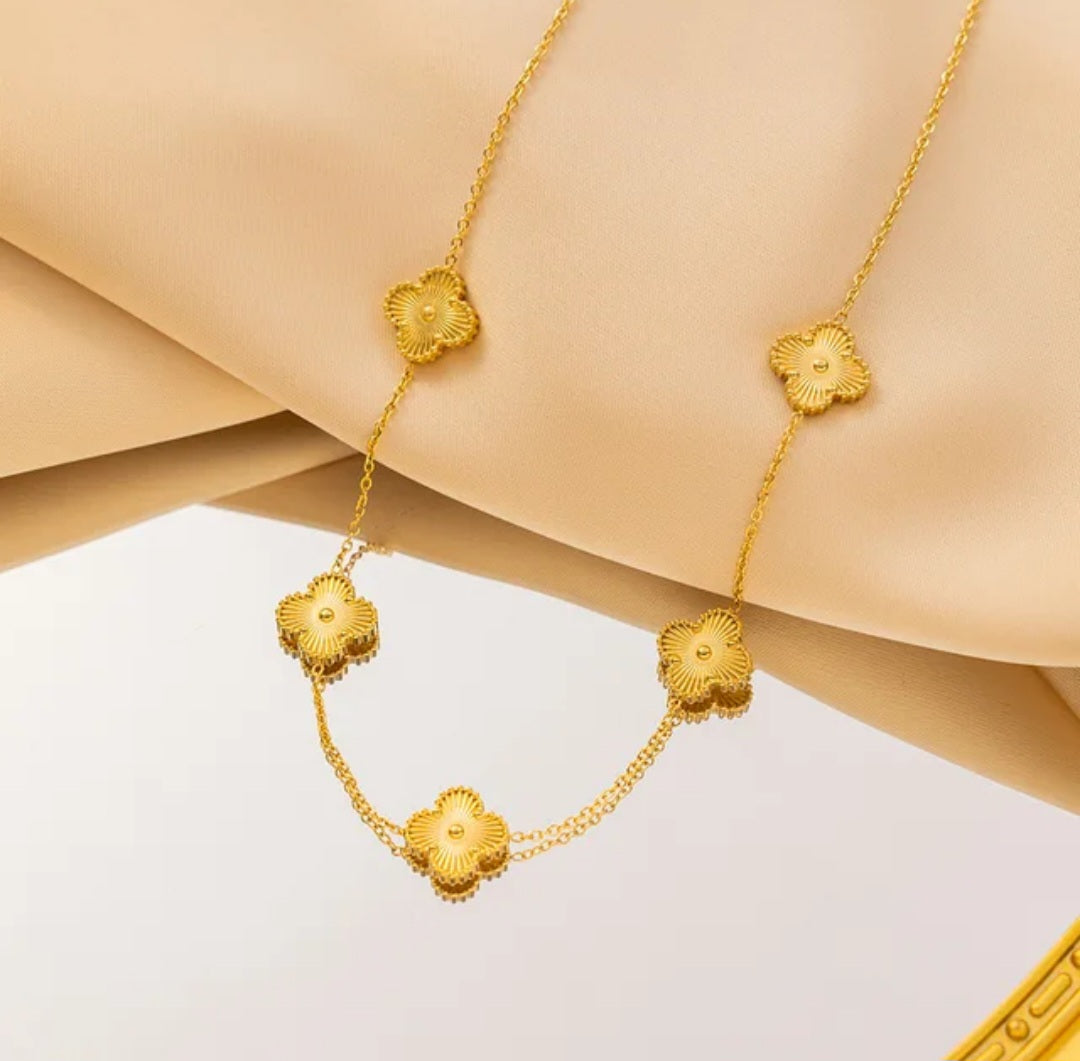 Stainless Steel Van 5 Charm 4 leaf Clover Necklace