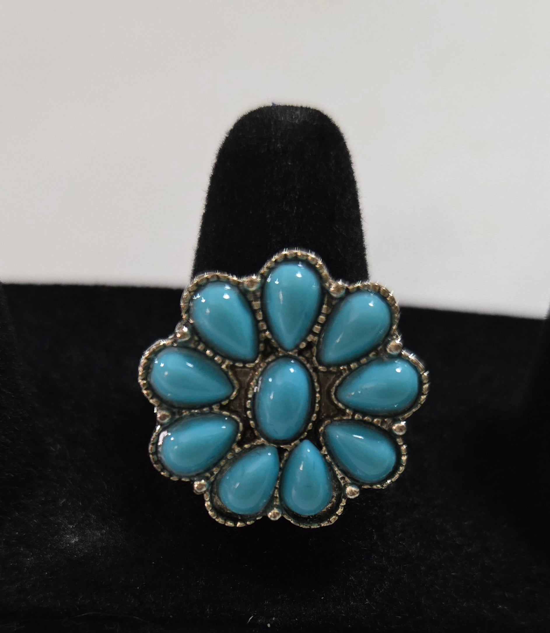 Boho Vintage inspire Turquoise Rings Material consists Alloy Silver Plated