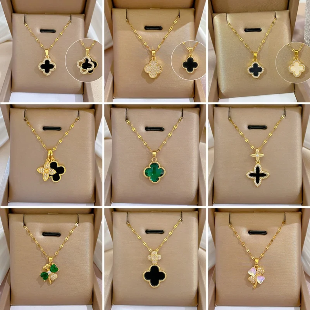 Class Grass Stainless Steel Van Cleef inspired Clover Pendant Necklace