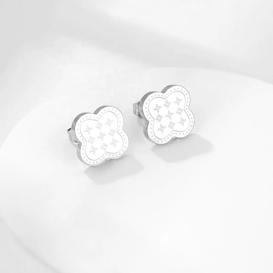 Van Cleef inspired 18k gold and silver plated titanium and stainless steel clover necklace, bracelets and earrings.
