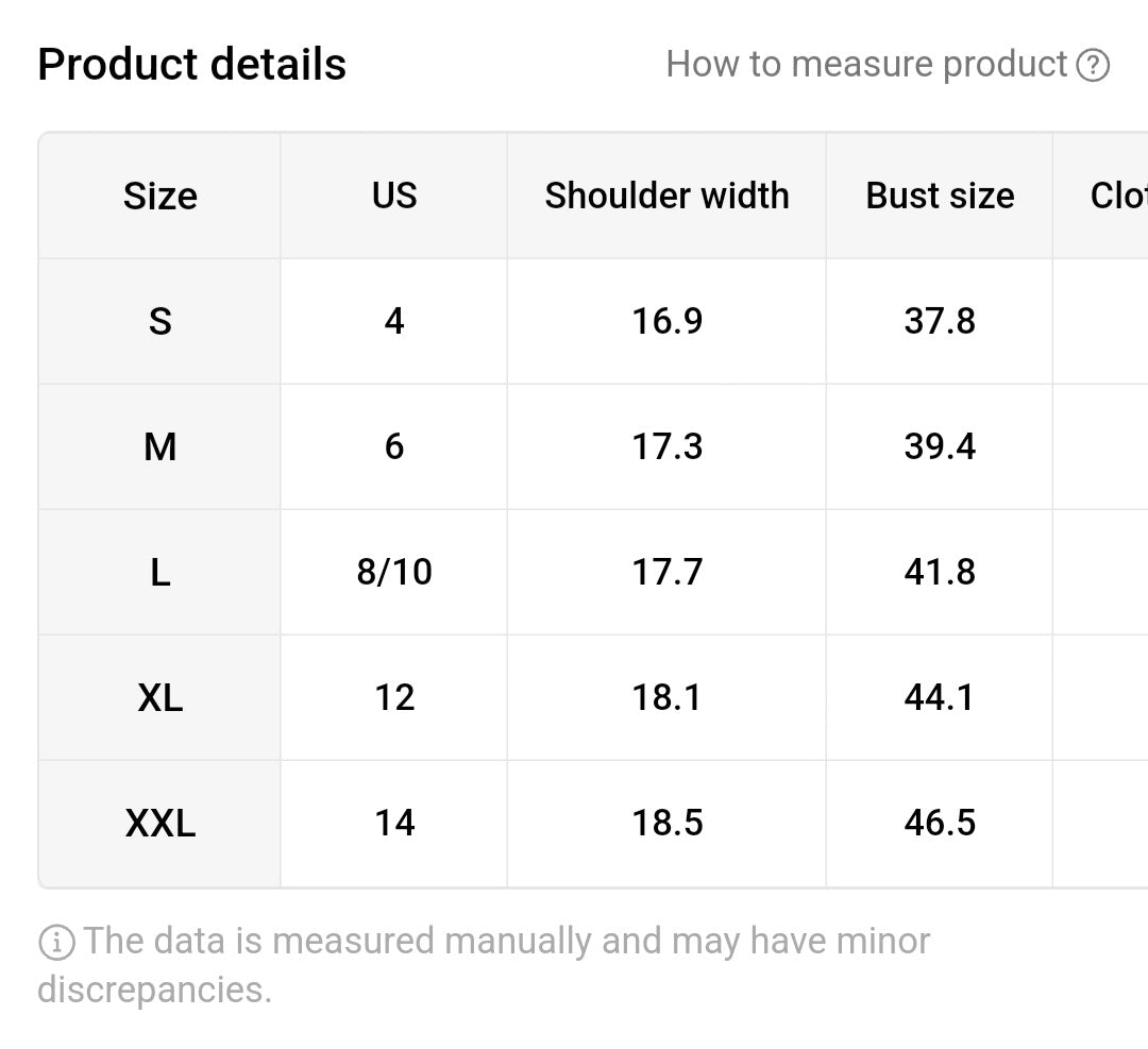 Small(4) Medium(6) Large(8/10) X-Large(12) XX-Large (14)