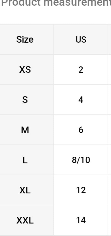 Size: Small (4) Medium (6) Large(8/10) X-Large (12)