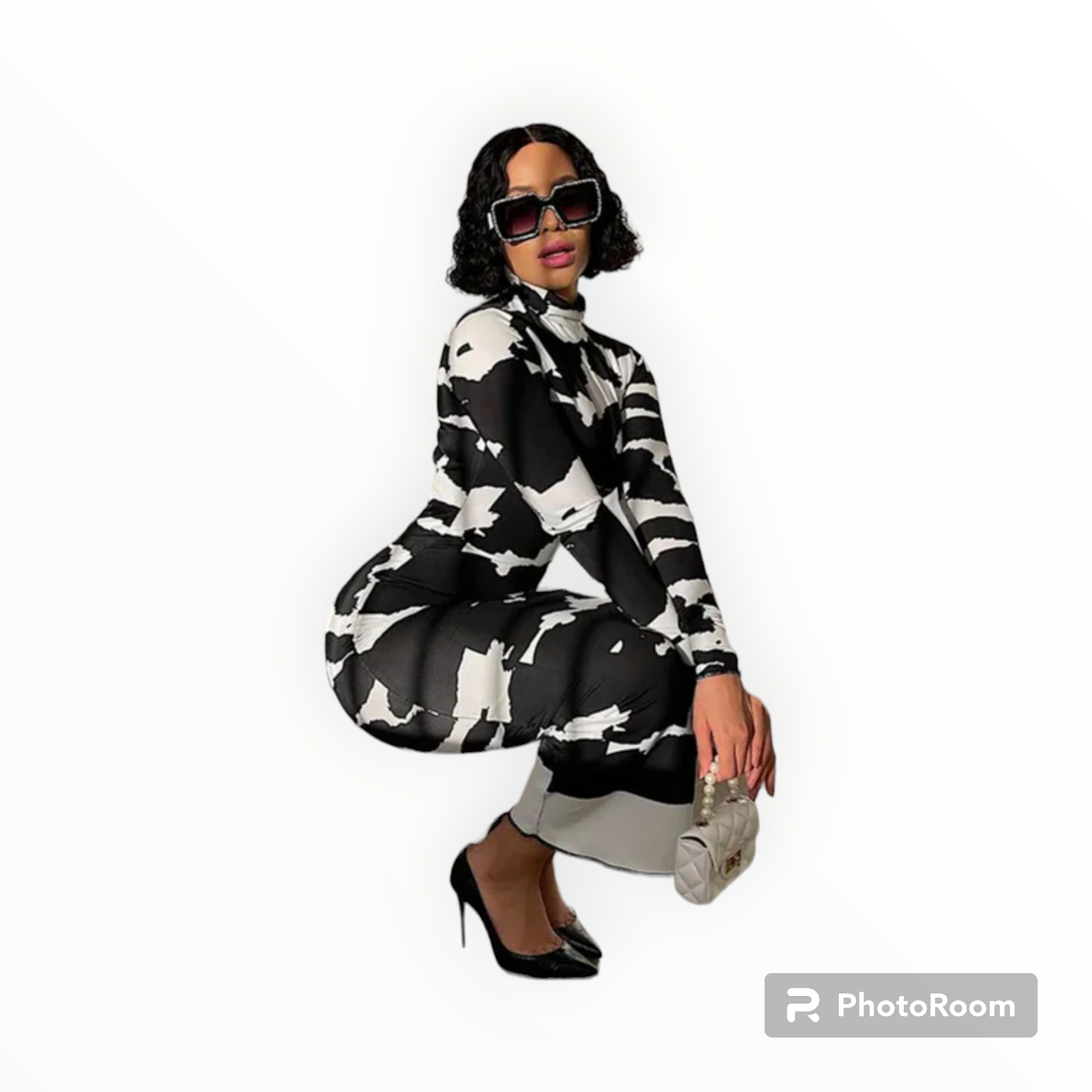 Hugcitar long sleeve turtleneck cow print bodycon maxi dress .