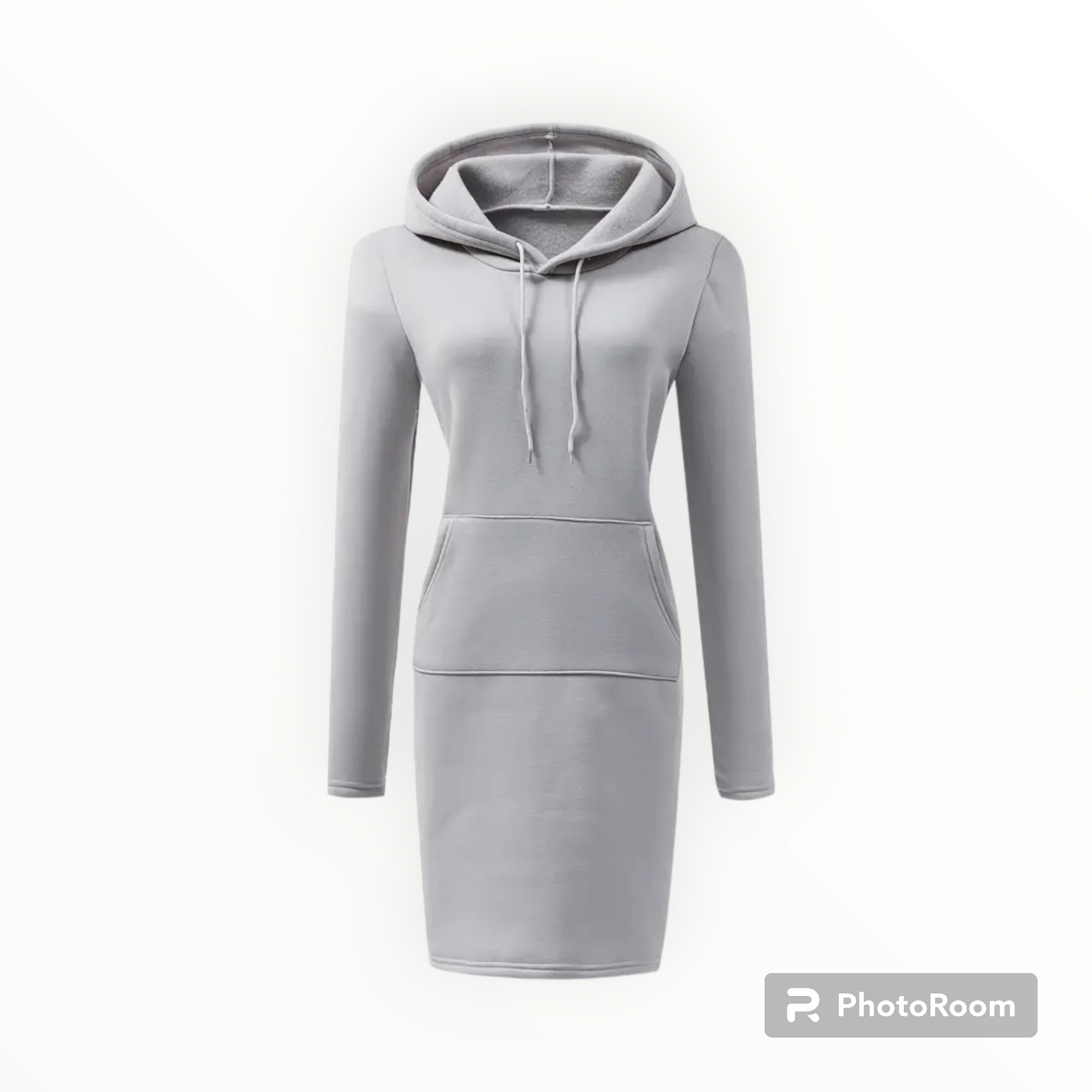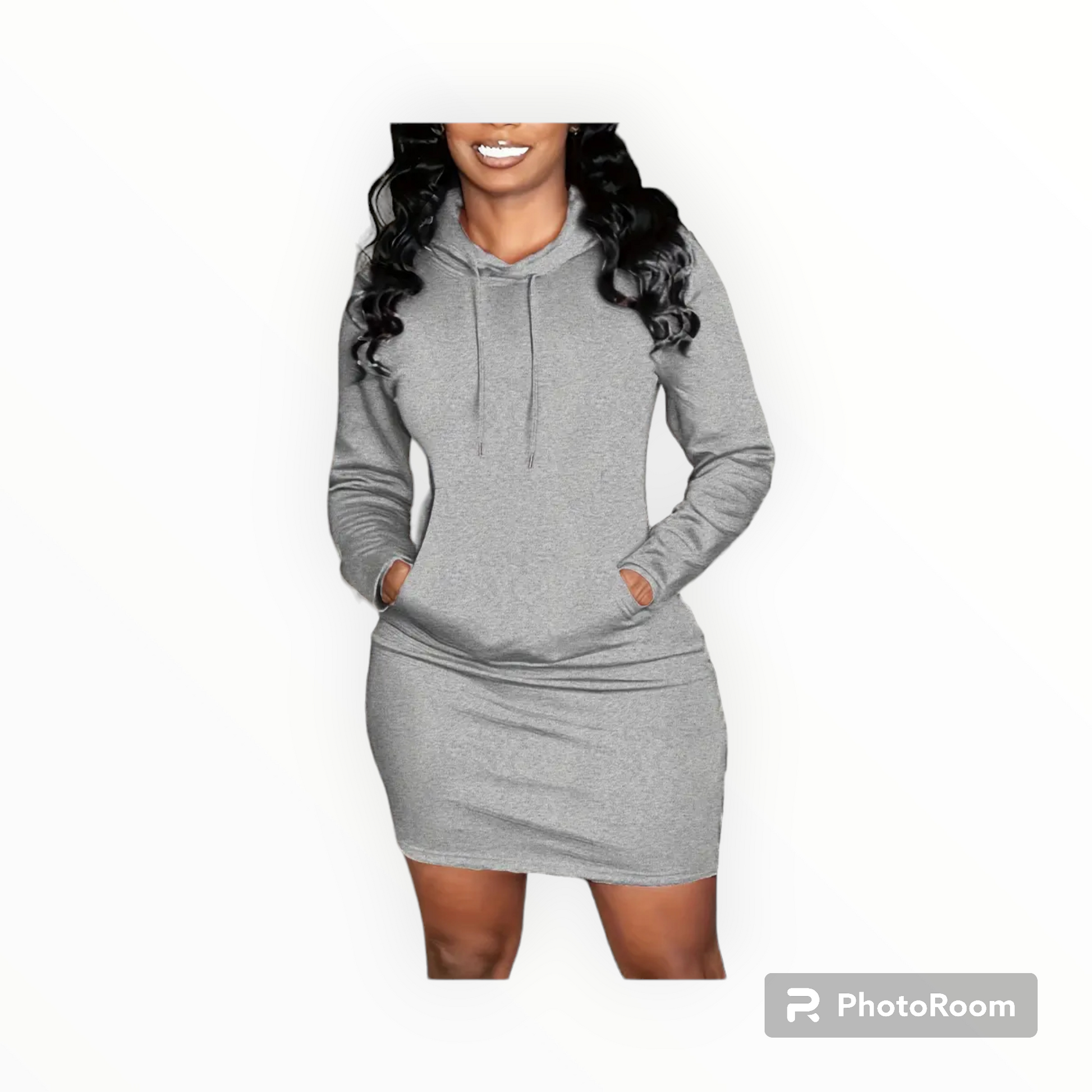 Women longs sleeve Grey Kangaroos Hoodie sweatshirt dress with drawstring and double front pockets