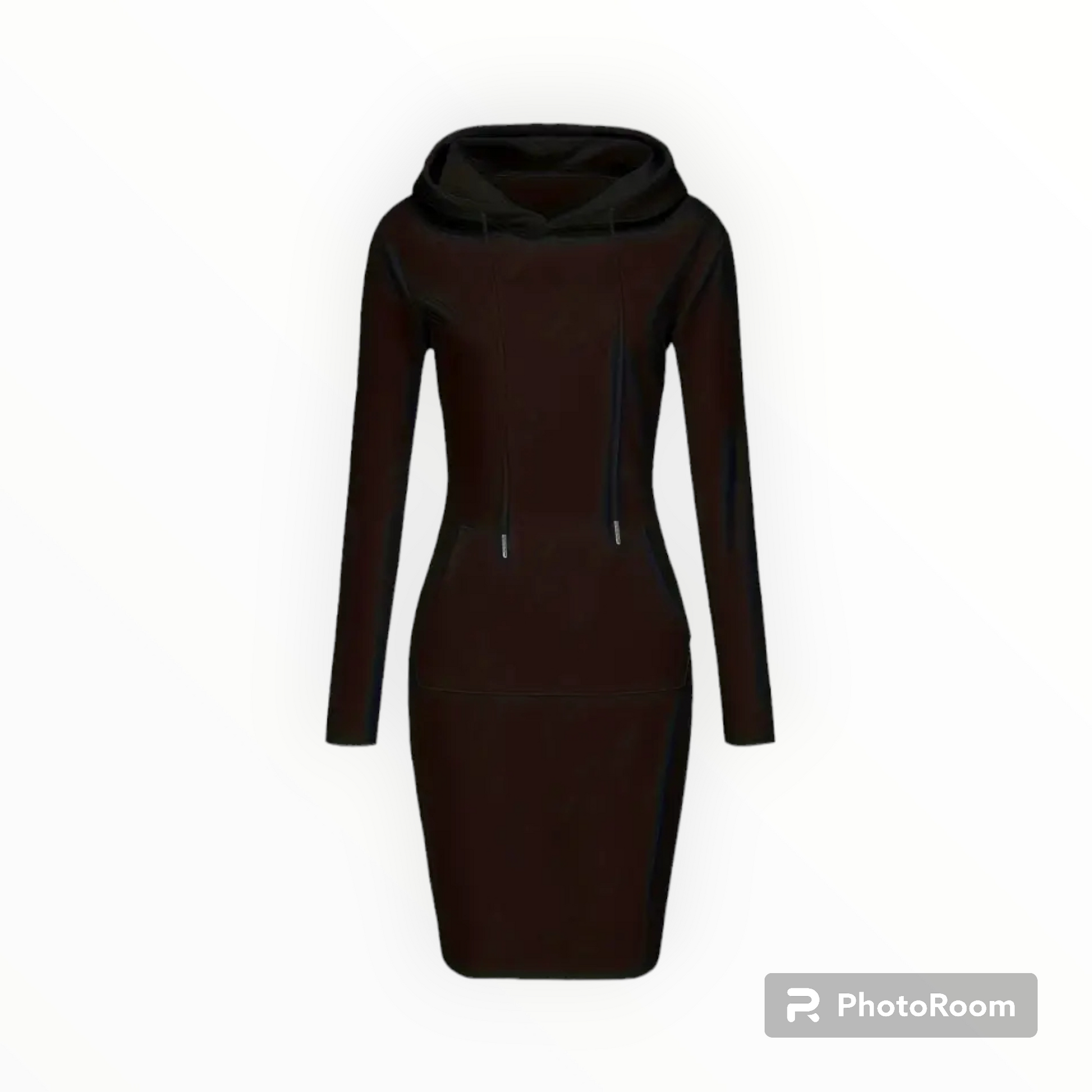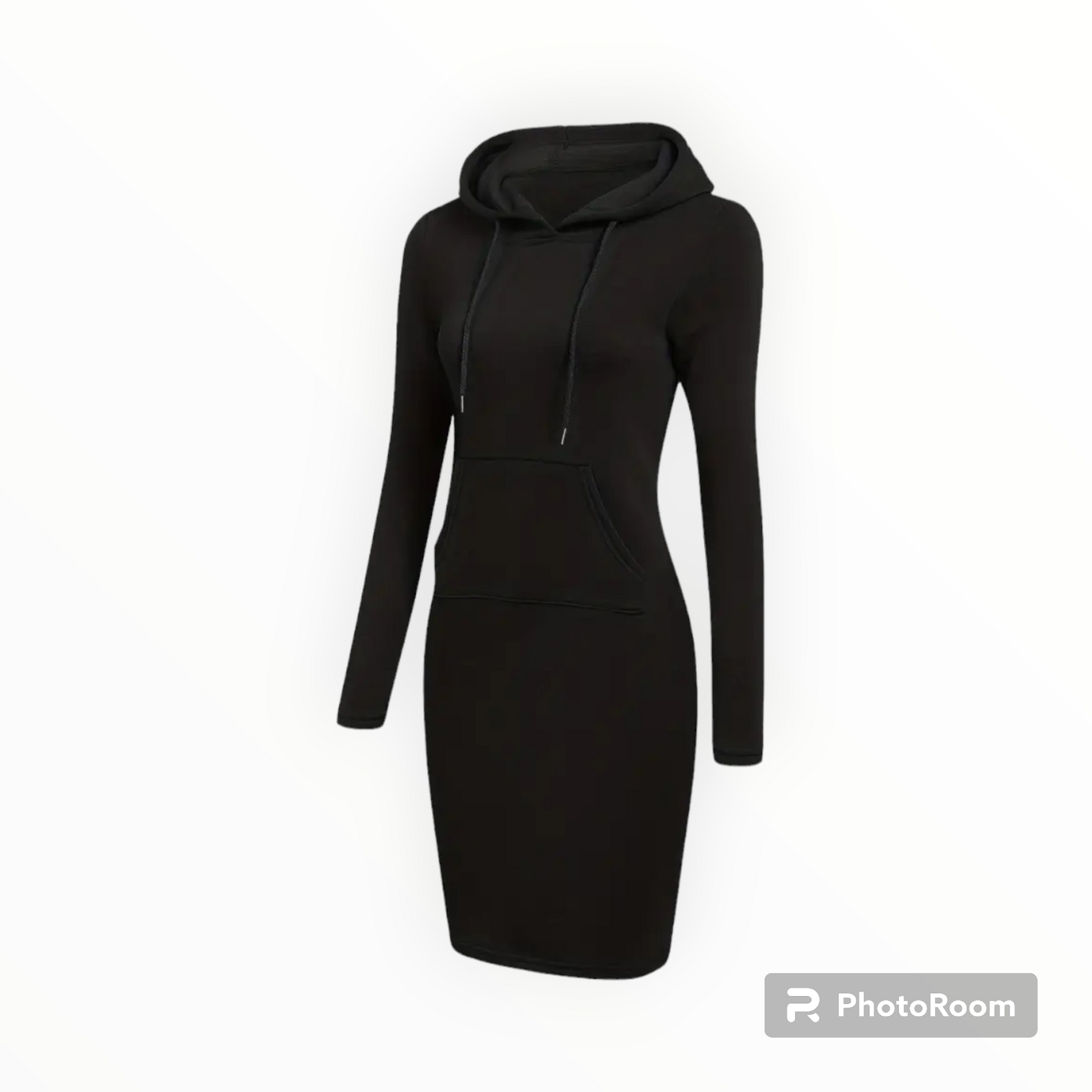 Women longs sleeve Black Kangaroos Hoodie sweatshirt dress with drawstring and double front pockets