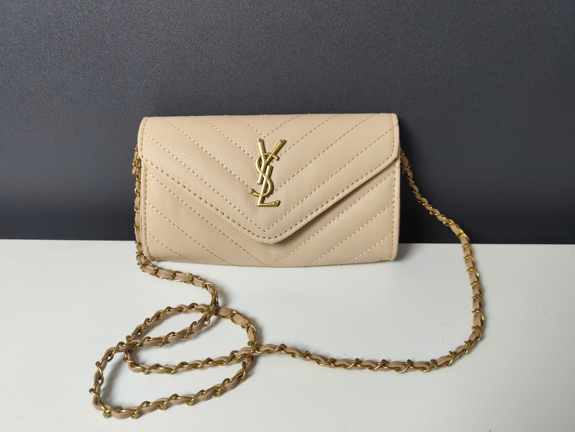 YSL Designer Inspired Mini envelope wallet clutch with chain strap